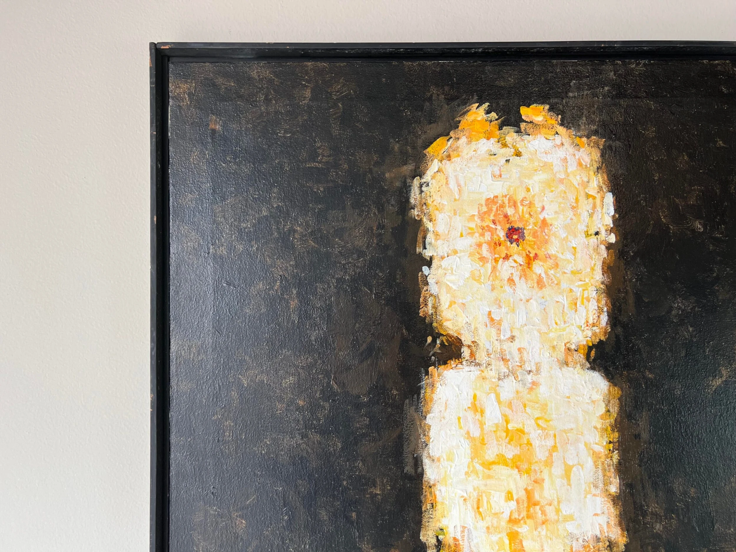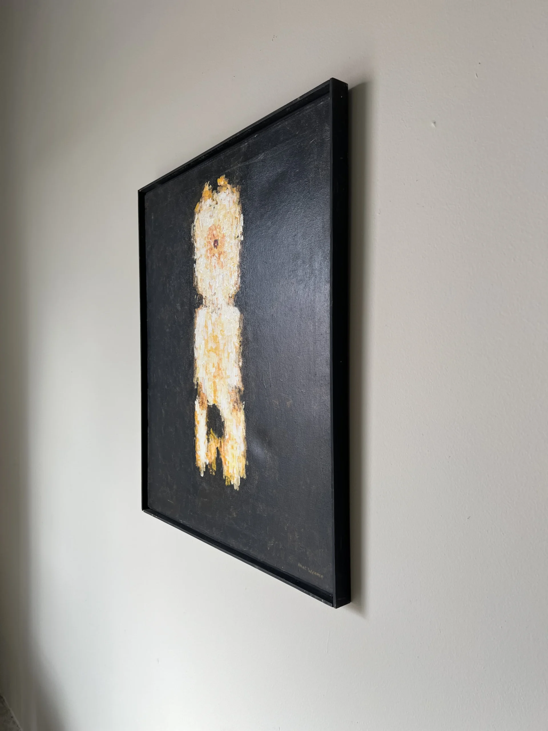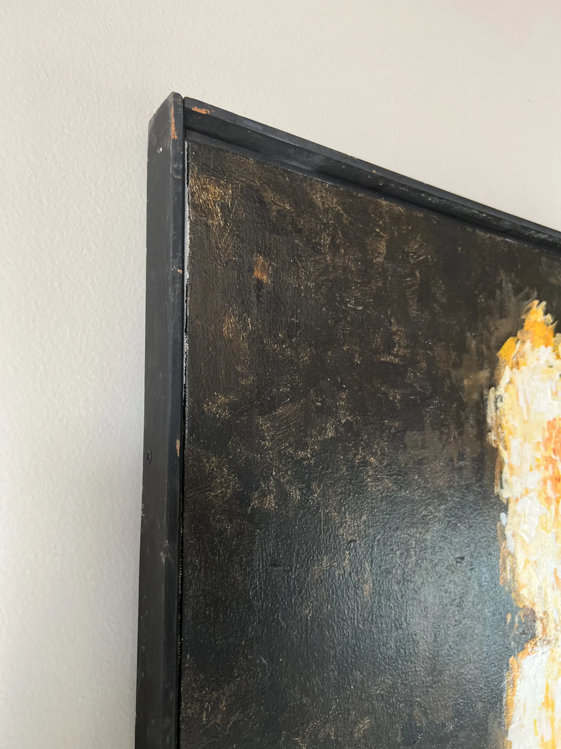 A fine Mid-century abstract expressionist oil painting on canvas By Hank Werner. C,1970’s. Signed lower right side. The work is framed in a black painted wooden frame. It commands attention with the beautiful neutral colors and exceptional balance.