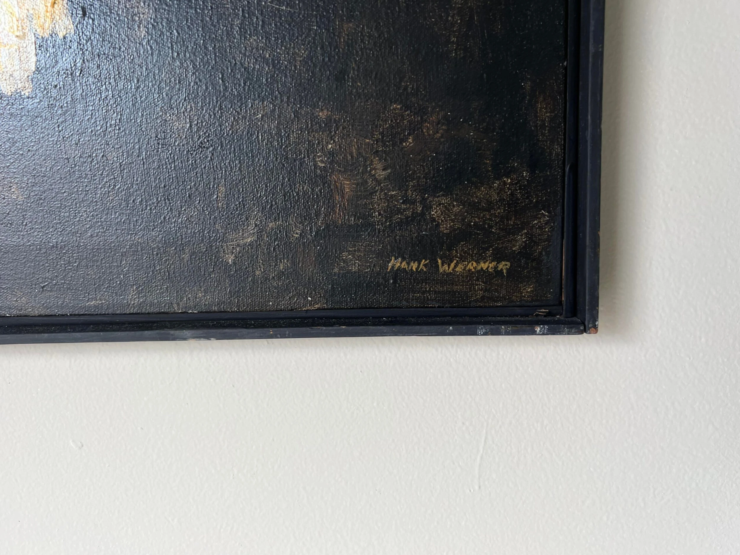 A fine Mid-century abstract expressionist oil painting on canvas By Hank Werner. C,1970’s. Signed lower right side. The work is …