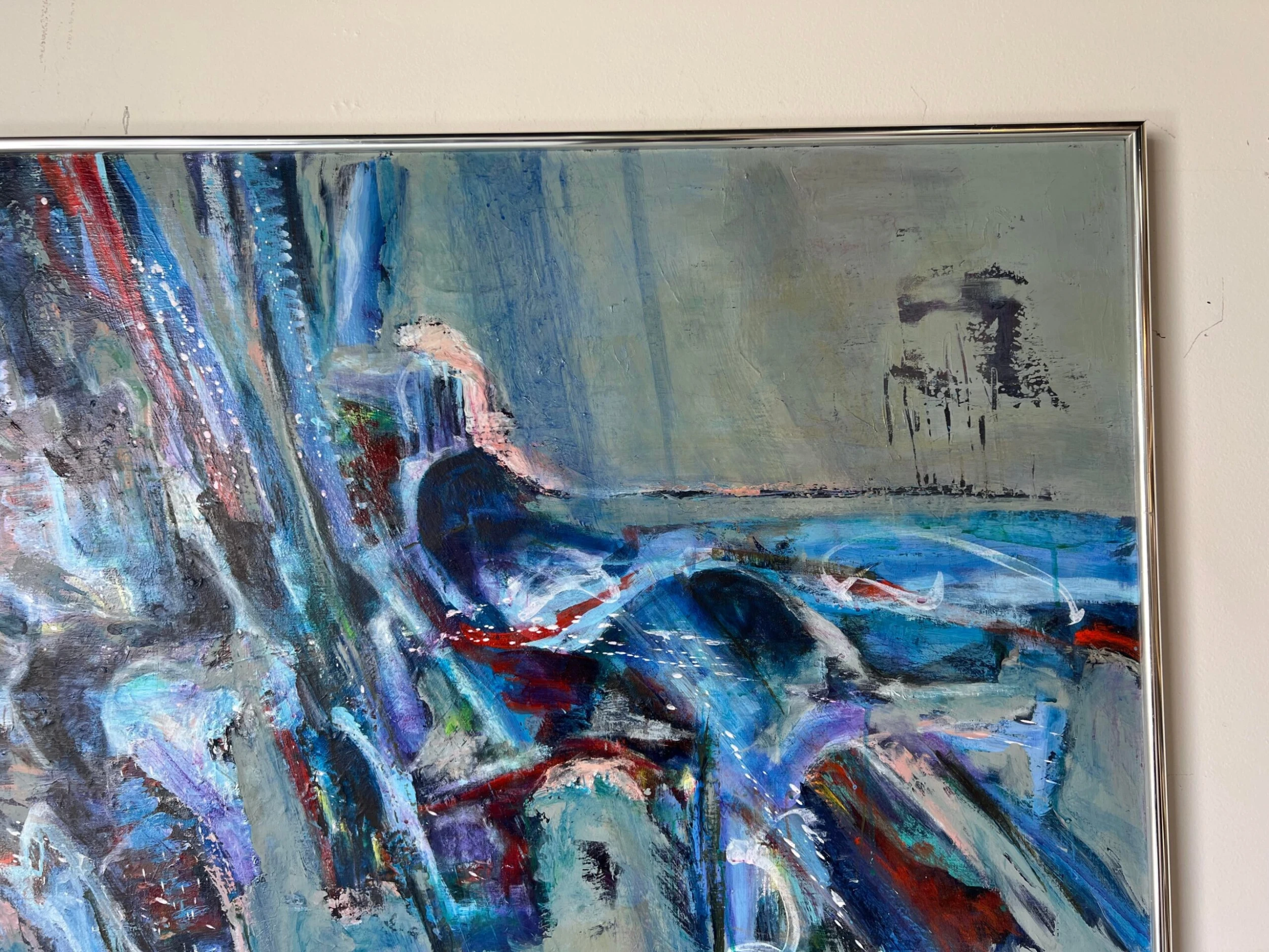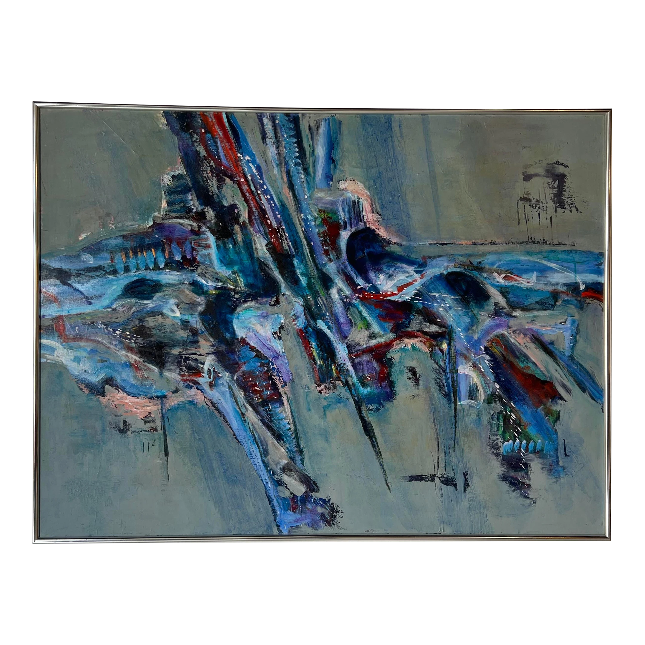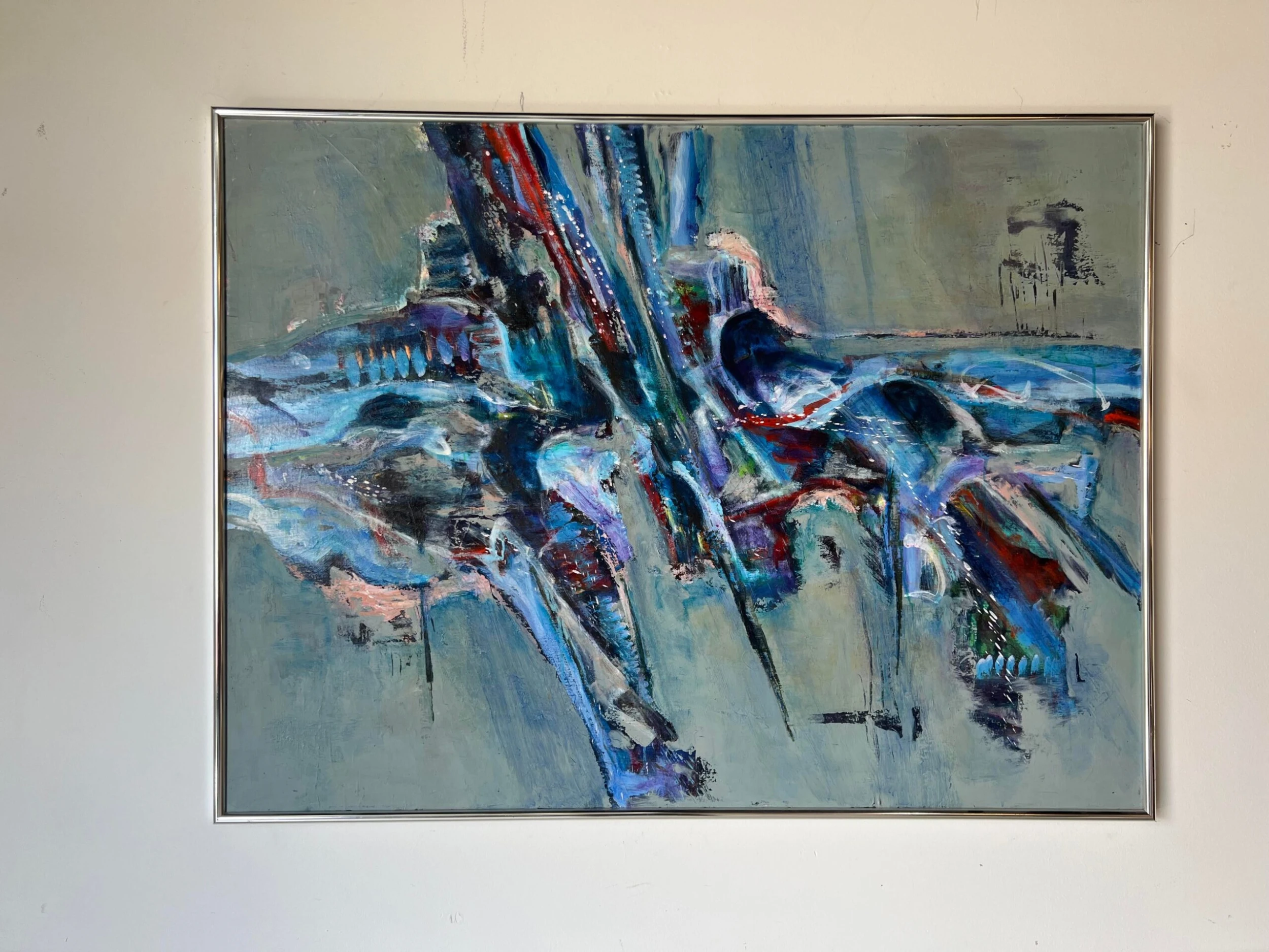 A wonderful, signed mid-century expressionist abstract oil on canvas painting.