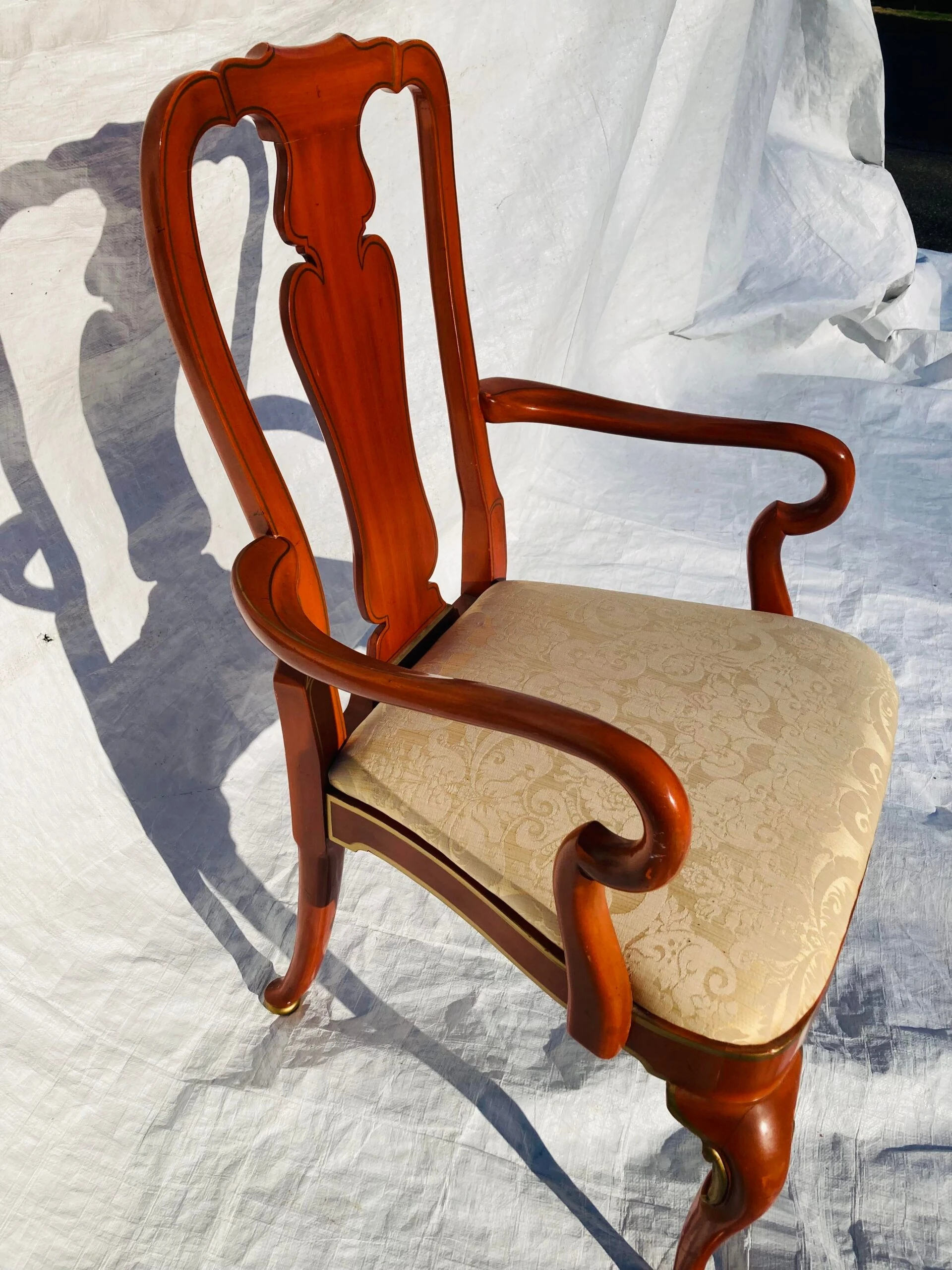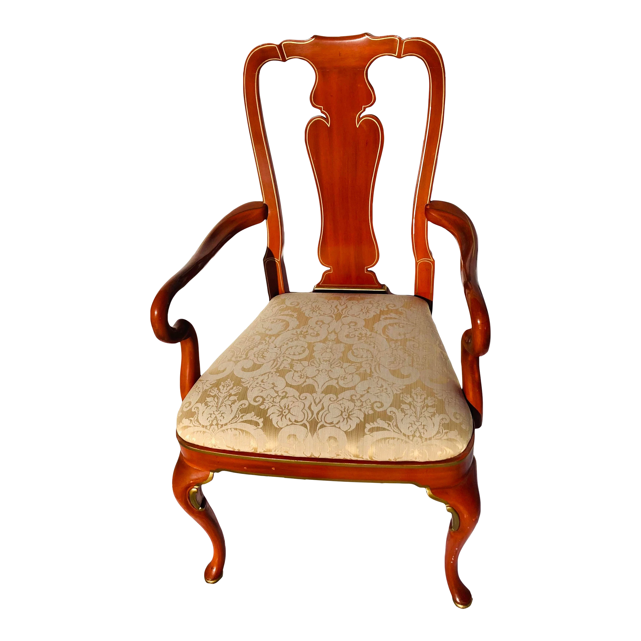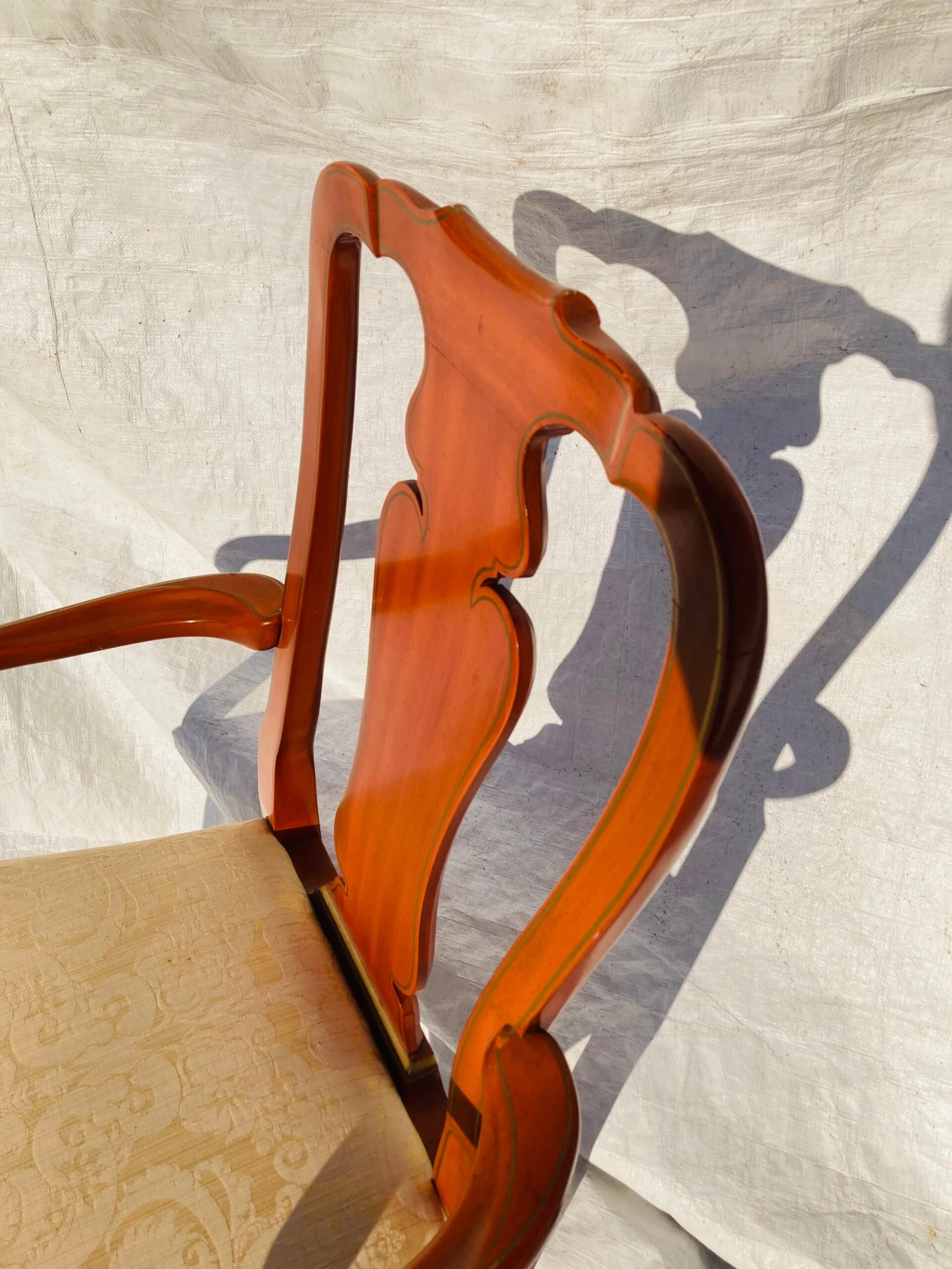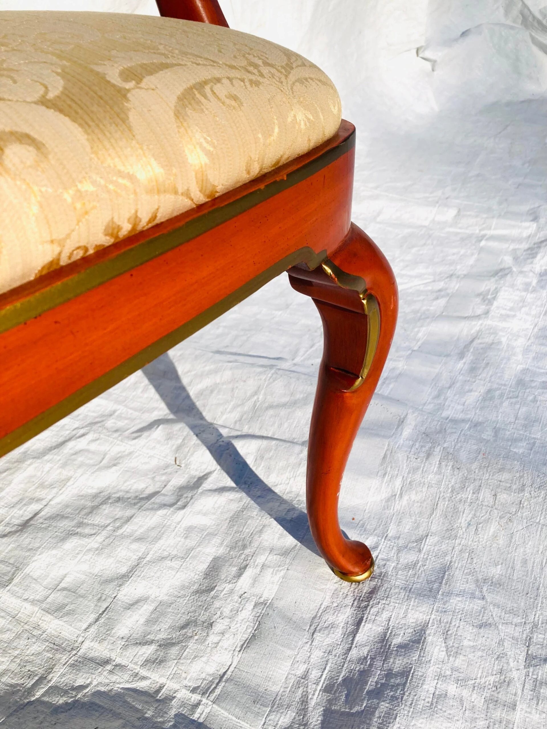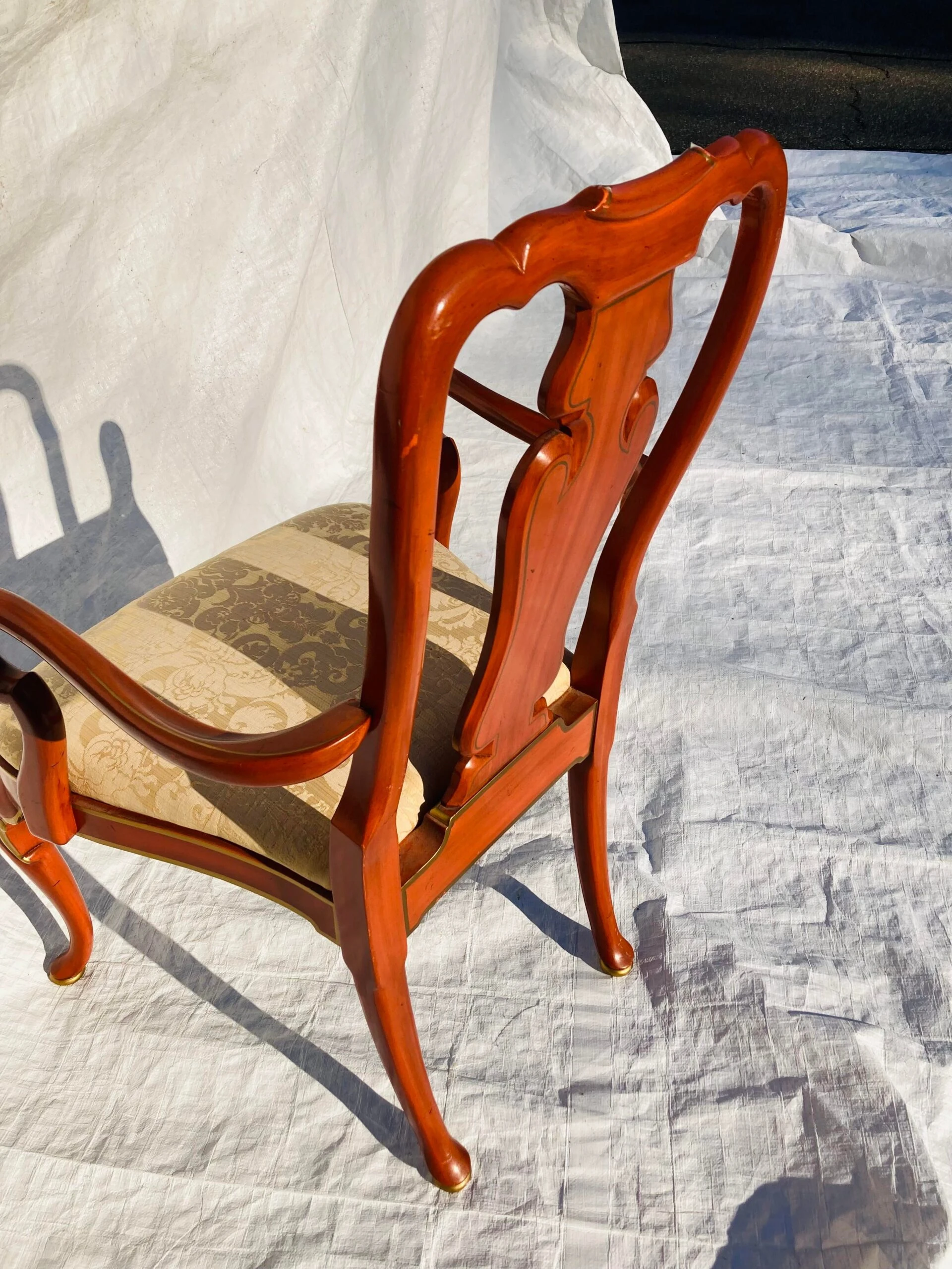80’s Queen Anne Style Arm Chair , Original Paint by the Company Coral and Gold 39”H X 24”W X 23”D , Seat H 18” , Makers mark reads ” KINDEL FURNITURE COMPANY” Arm 26.5 Iw 20” Id 18”