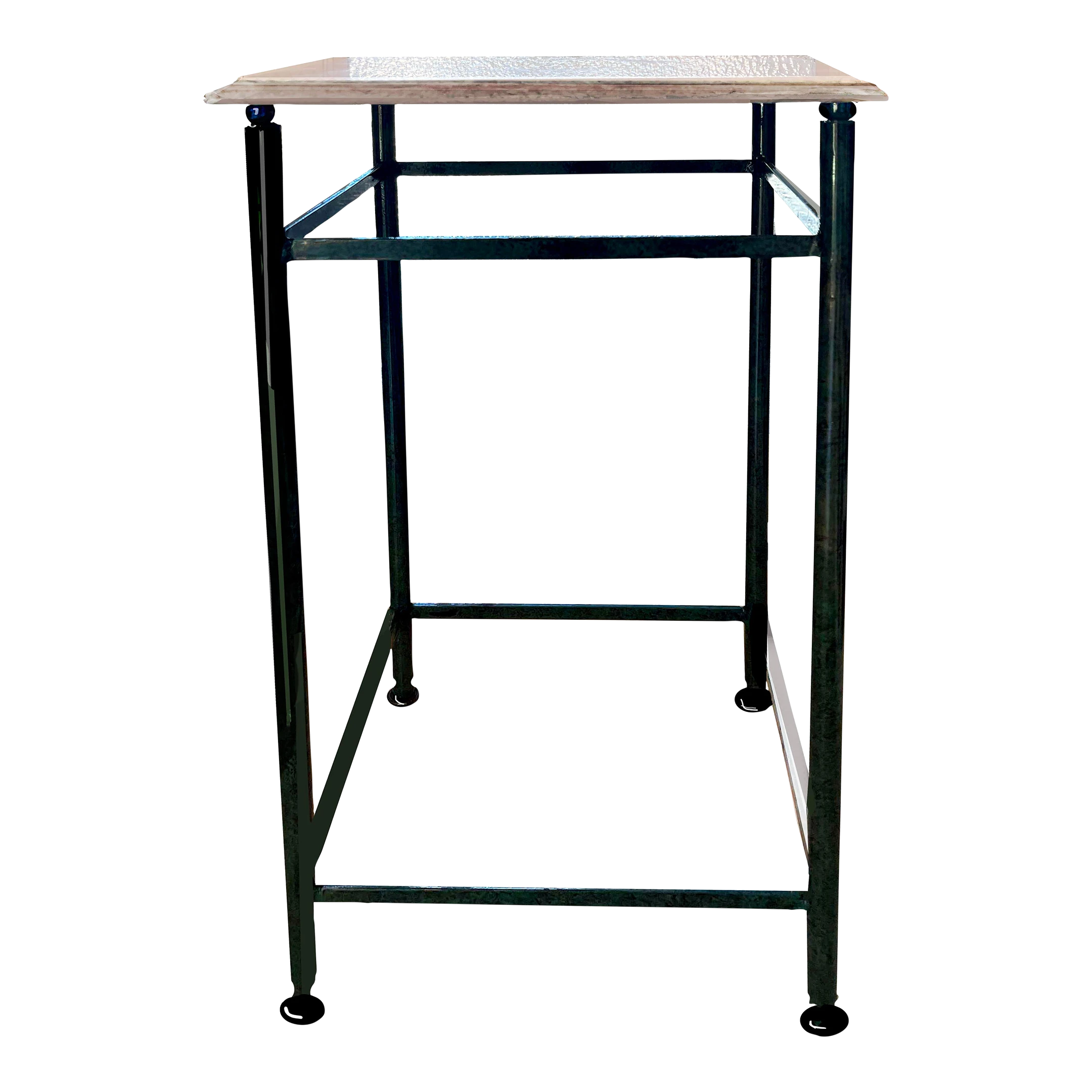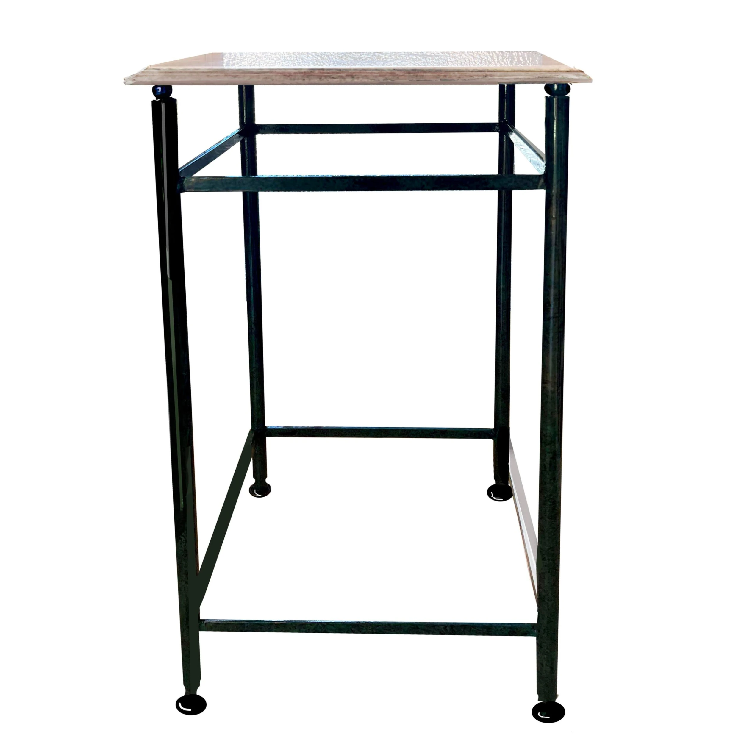 A very nice elegant clean looking iron metal accent side table that has been sealed with a beautiful black and …