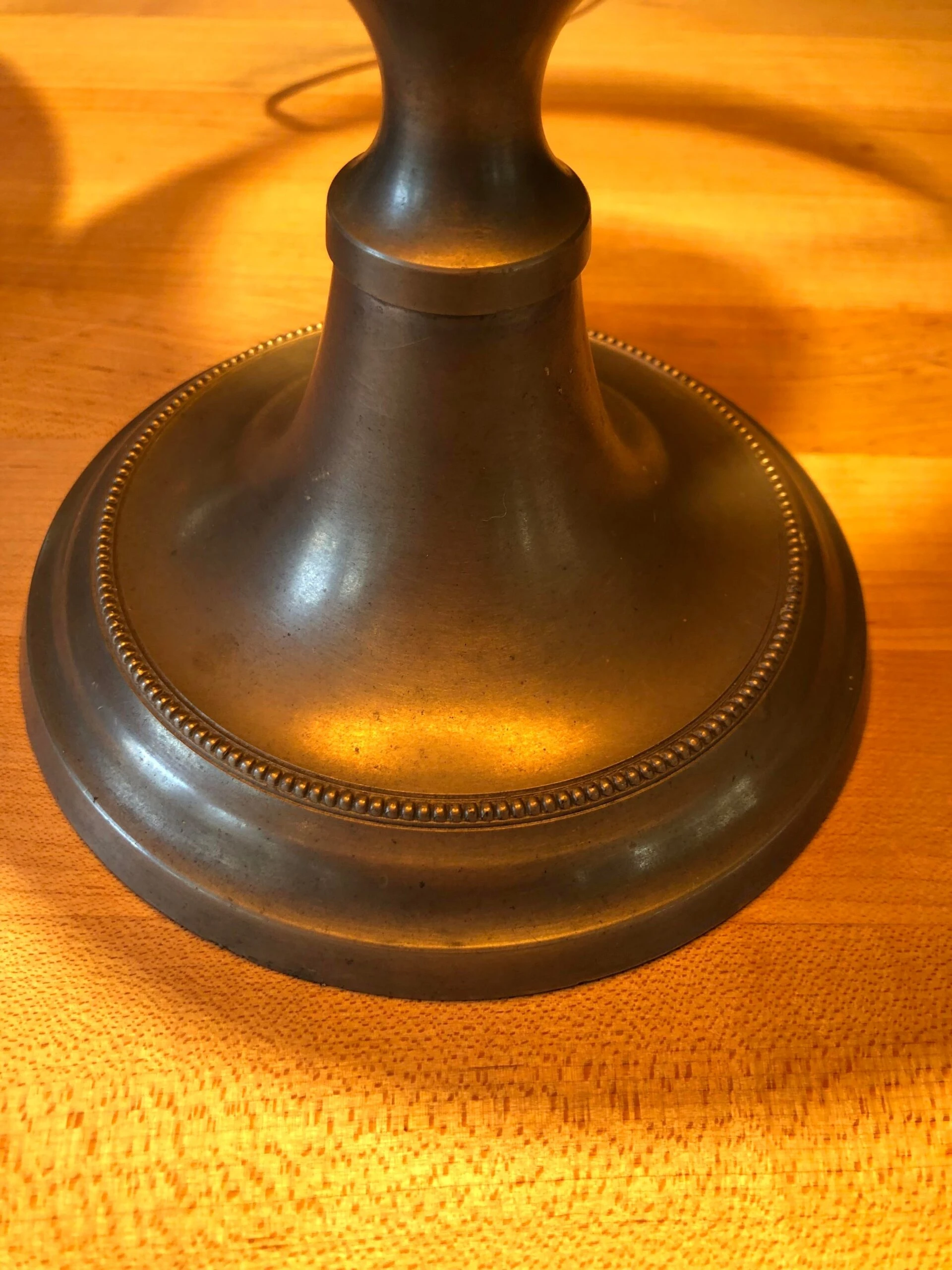 In good working condition, pewter in good condition, lamp shade not included