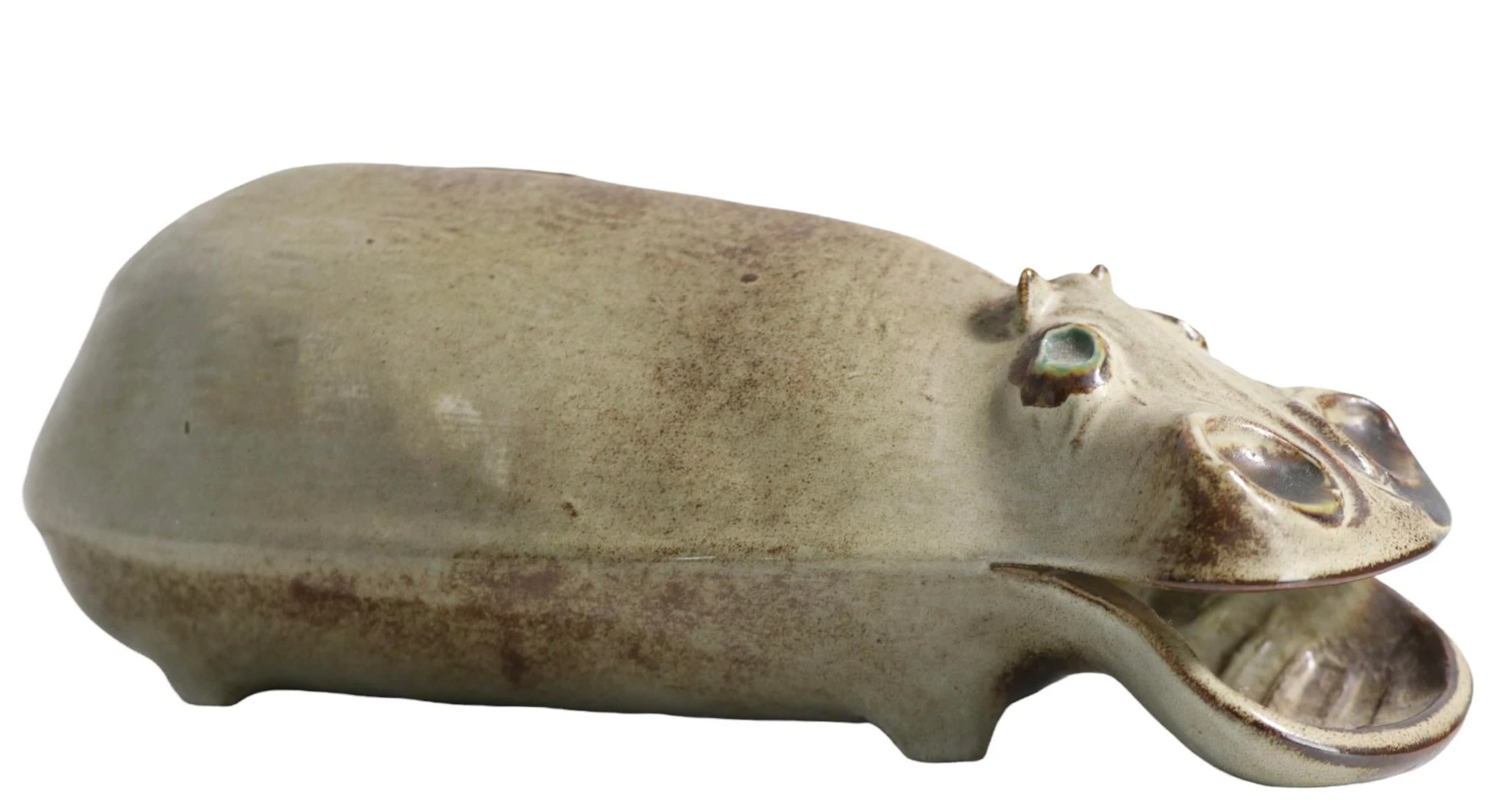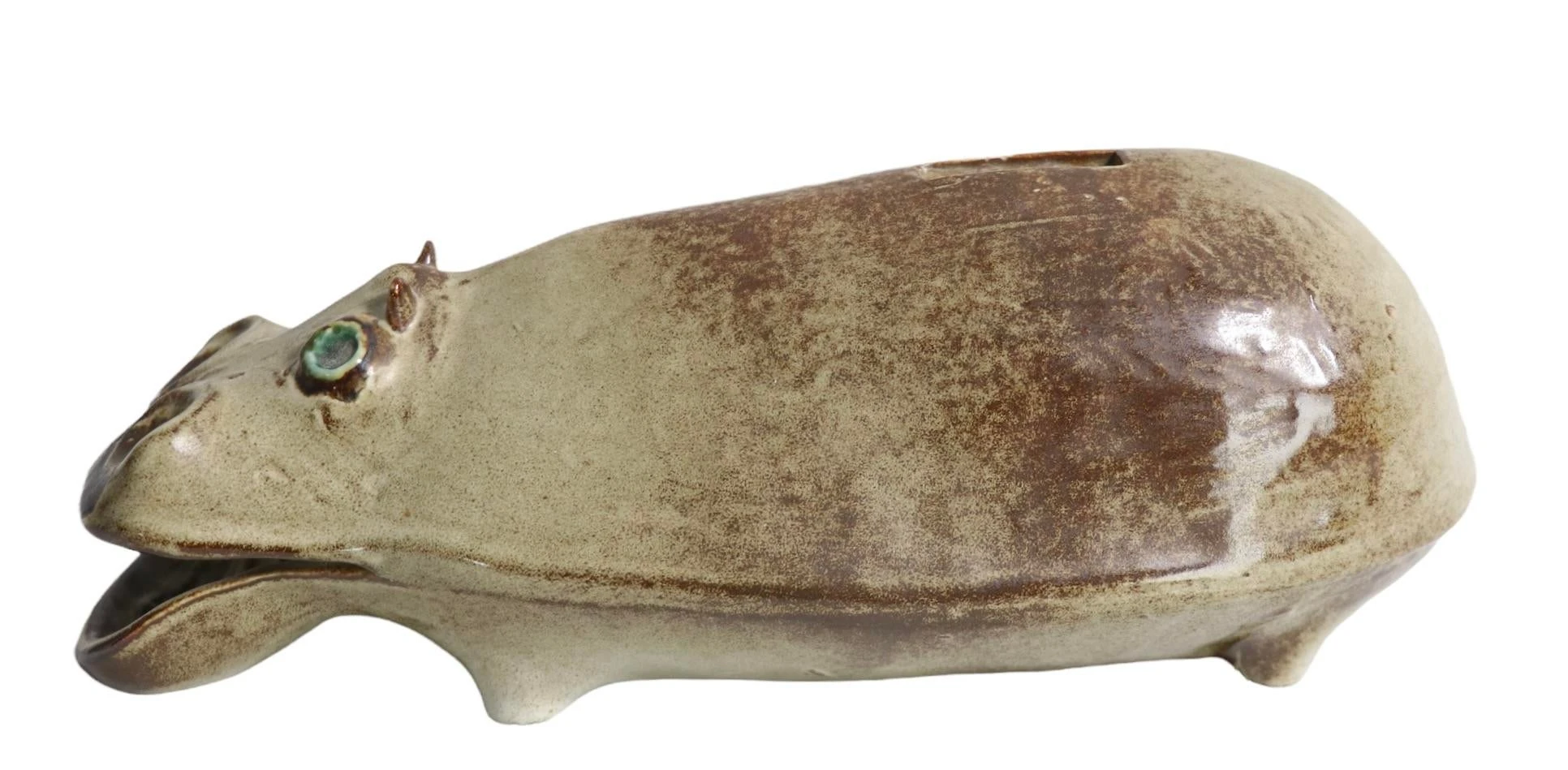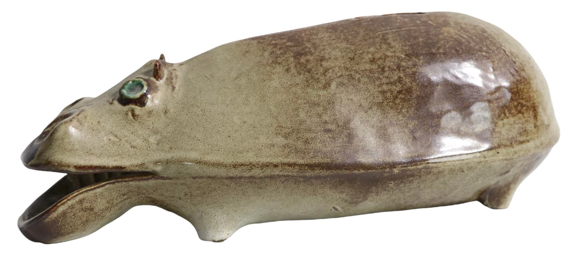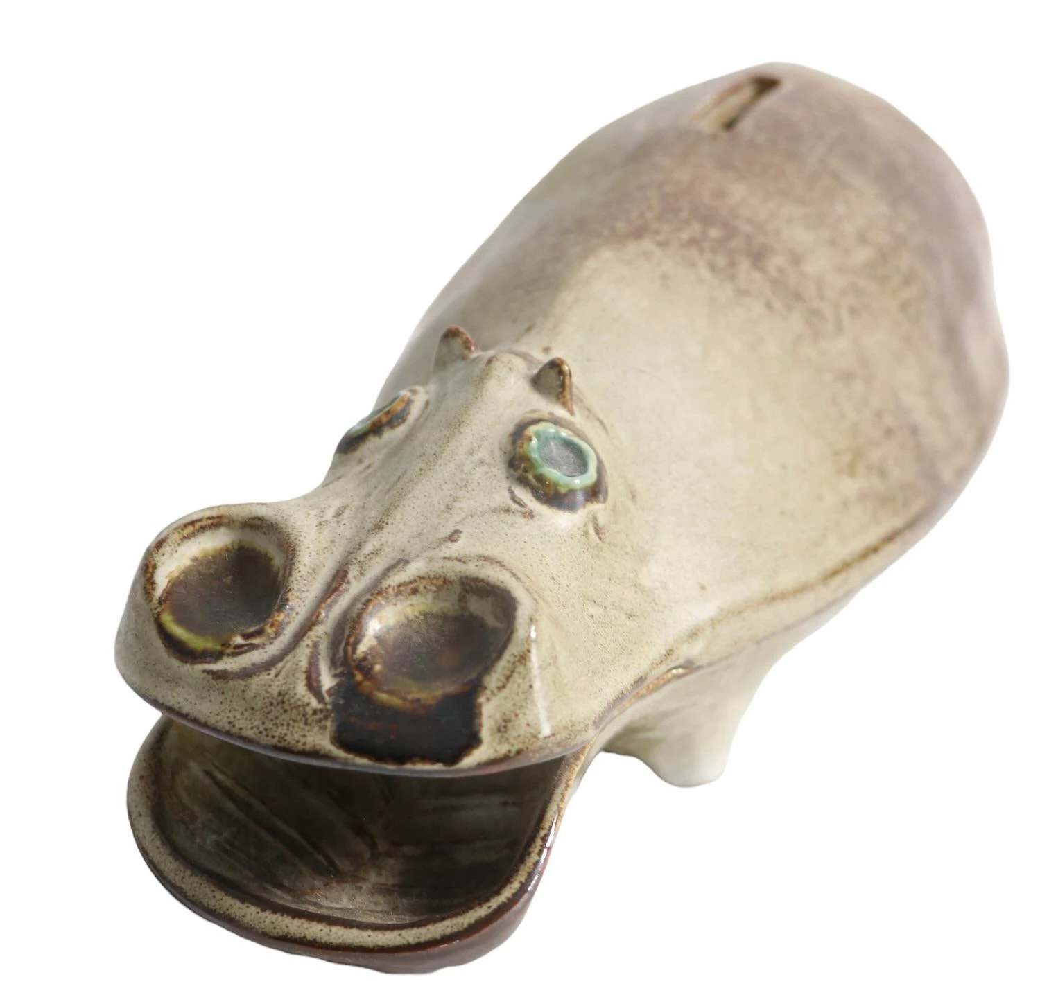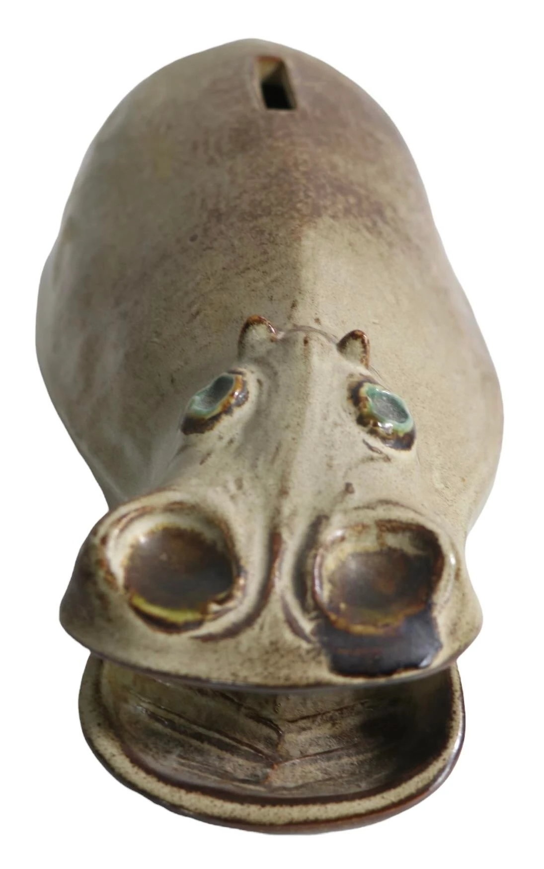 Fun period 1970’s art pottery hippopotamus bank, by David Gil for Bennington Pottery. This example is in excellent original condition, …