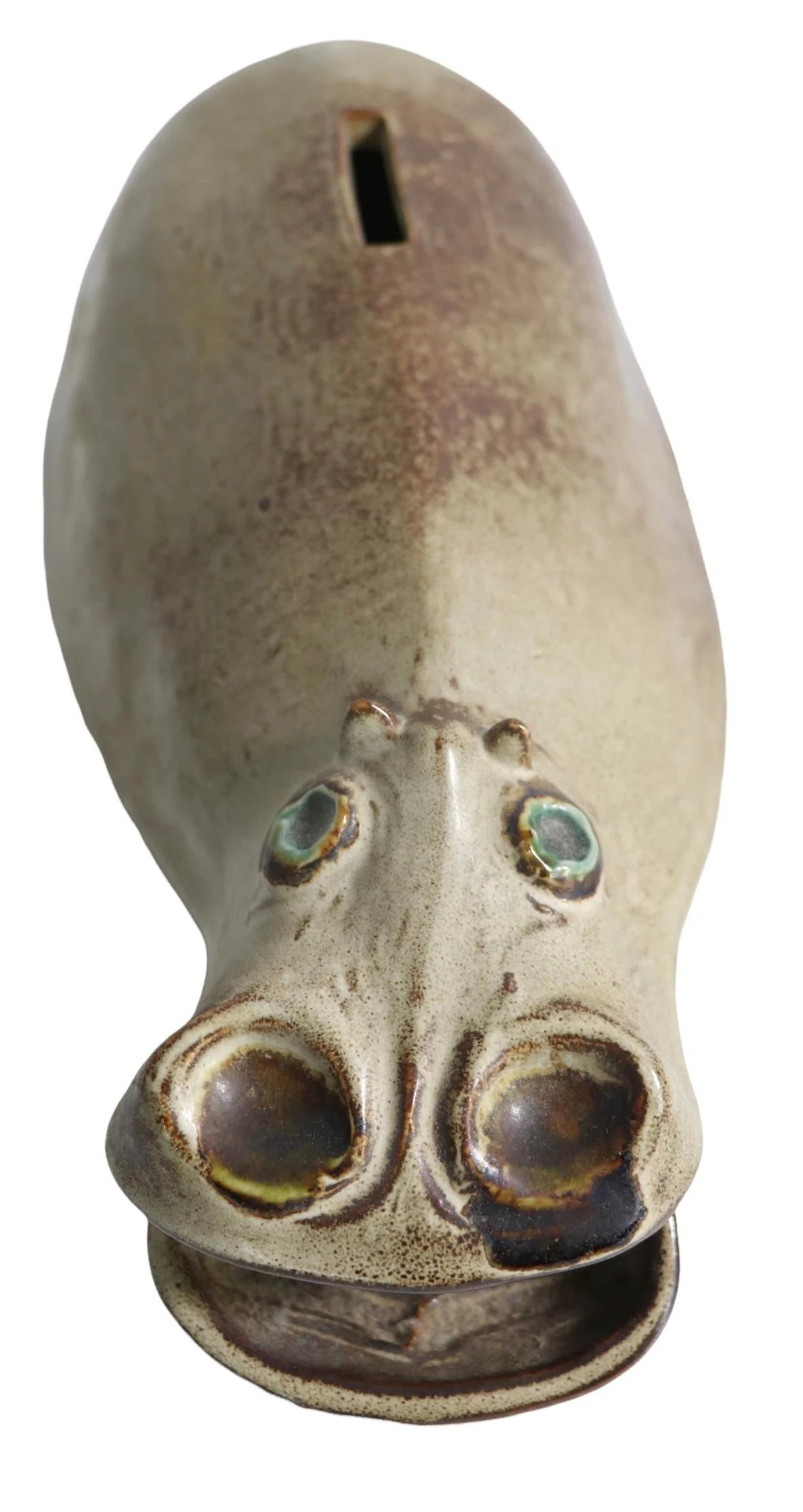 Fun period 1970’s art pottery hippopotamus bank, by David Gil for Bennington Pottery. This example is in excellent original condition, it is fully and correctly marked.