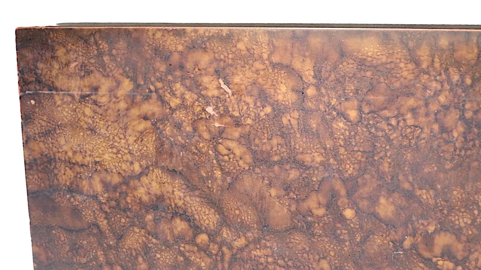 Parsons style coffee table in faux tortoise shell formica, by Lane Alta Vista c 1970’s. Chic and voguish Brutalist school table, in good vintage condition. The table is structurally sound and sturdy, it does show some cosmetic wear, scuffs, and blemishes etc. please see images. Please view the matching side tables from this cool vintage set, we have listed separately at Barbarella Home on Chairish.