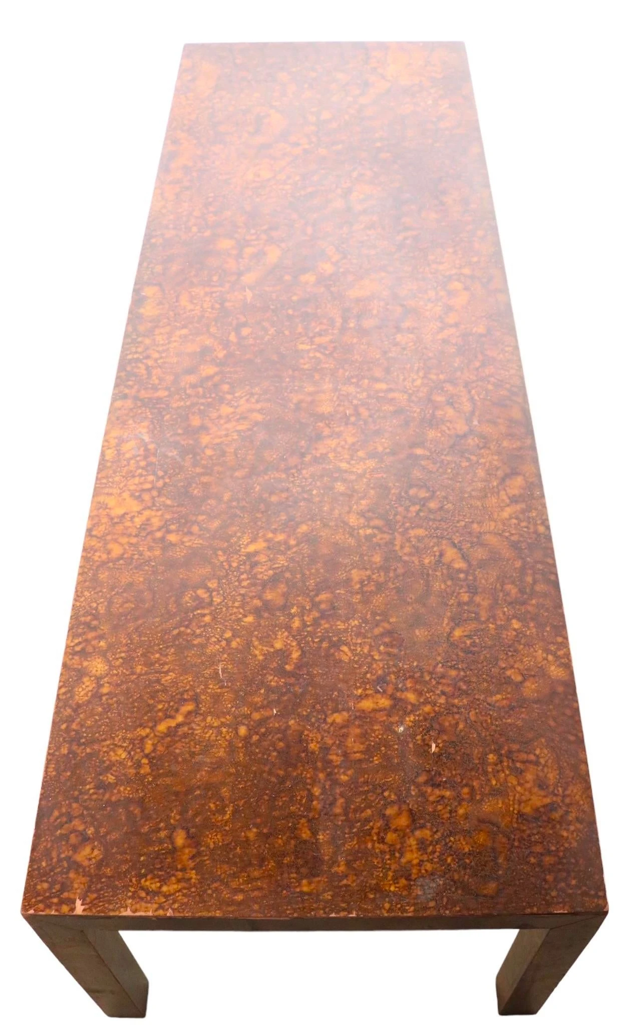 Parsons style coffee table in faux tortoise shell formica, by Lane Alta Vista c 1970’s. Chic and voguish Brutalist school …