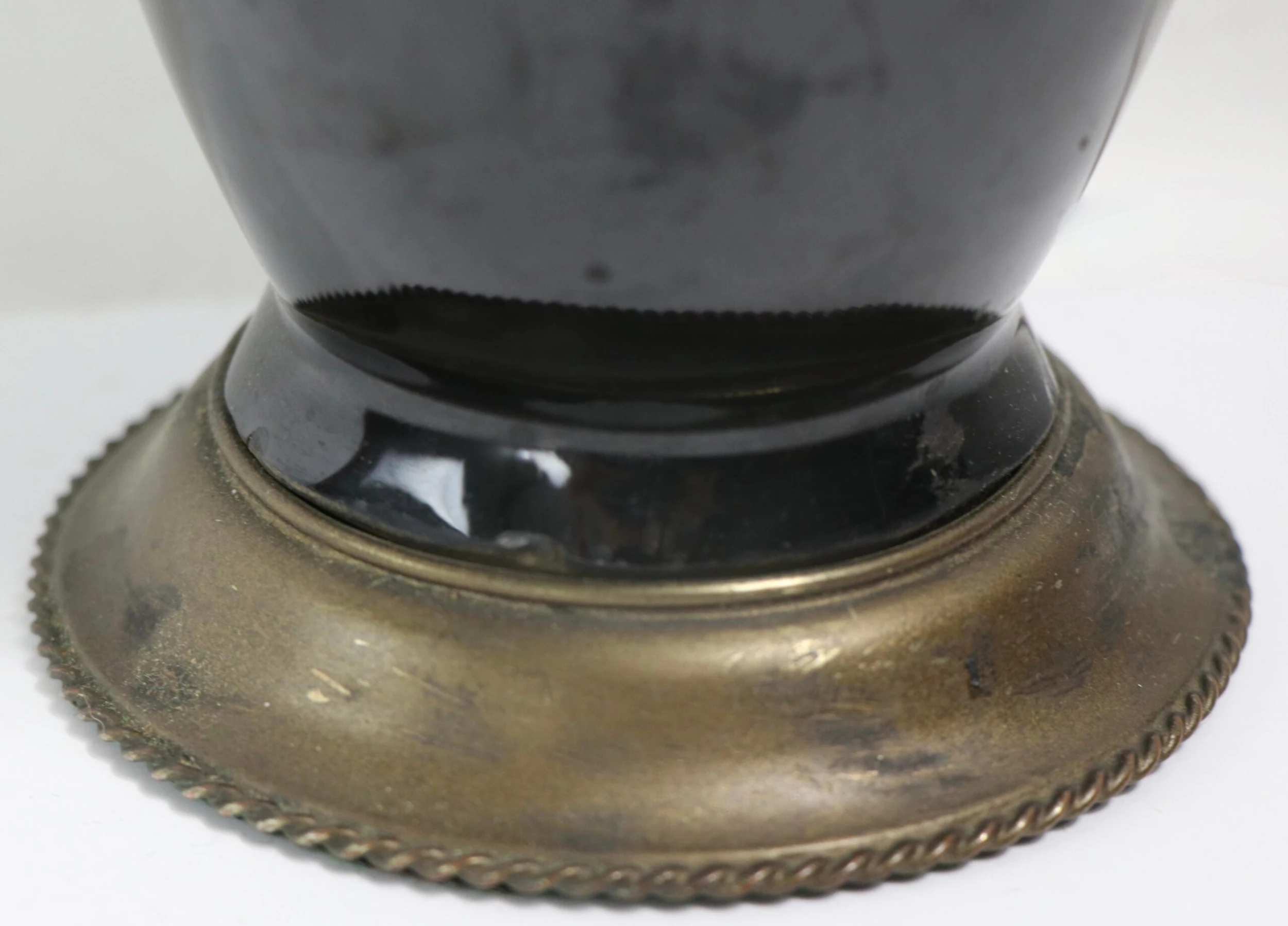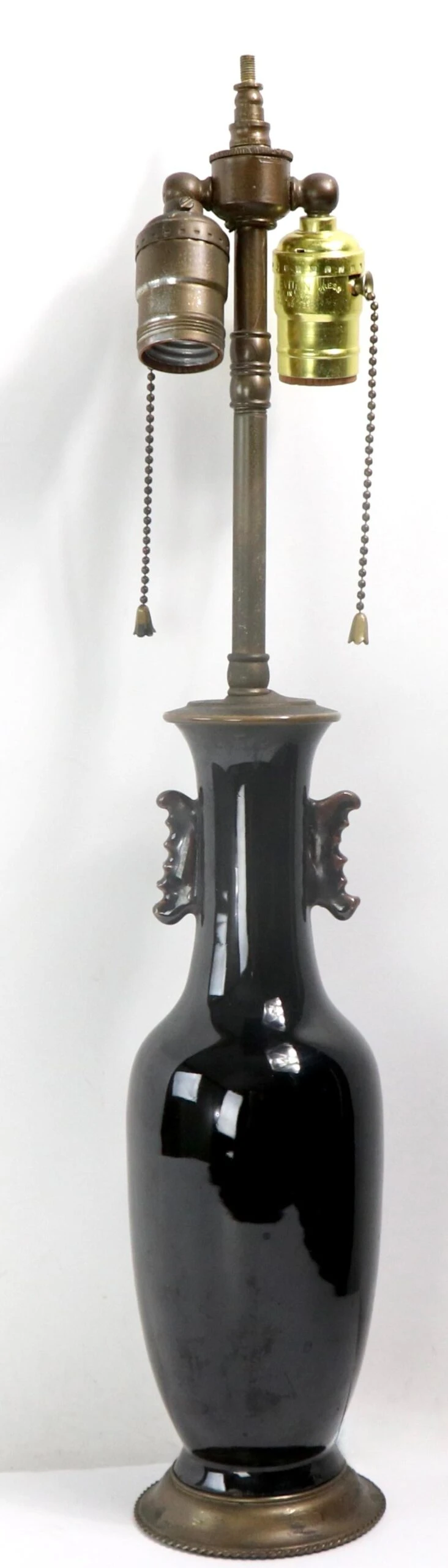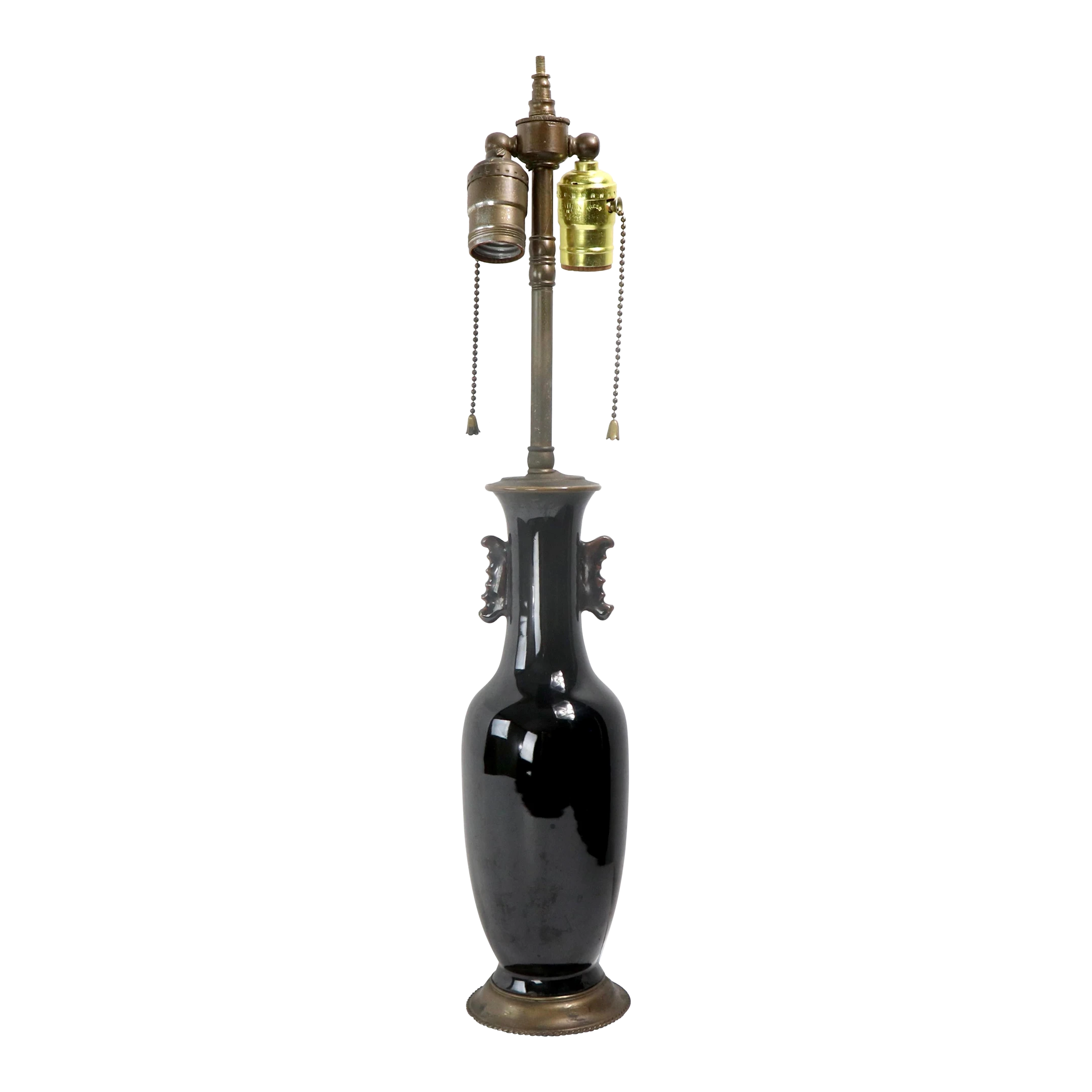 Vintage ceramic table lamp, executed in the Chinese style circa 1920 – 1940’s. The ceramic body has a high gloss glaze, and is dark brown in color. The lamp is in very good, working condition, free of damage or repairs.