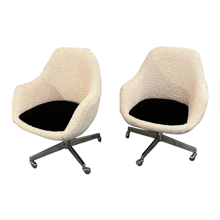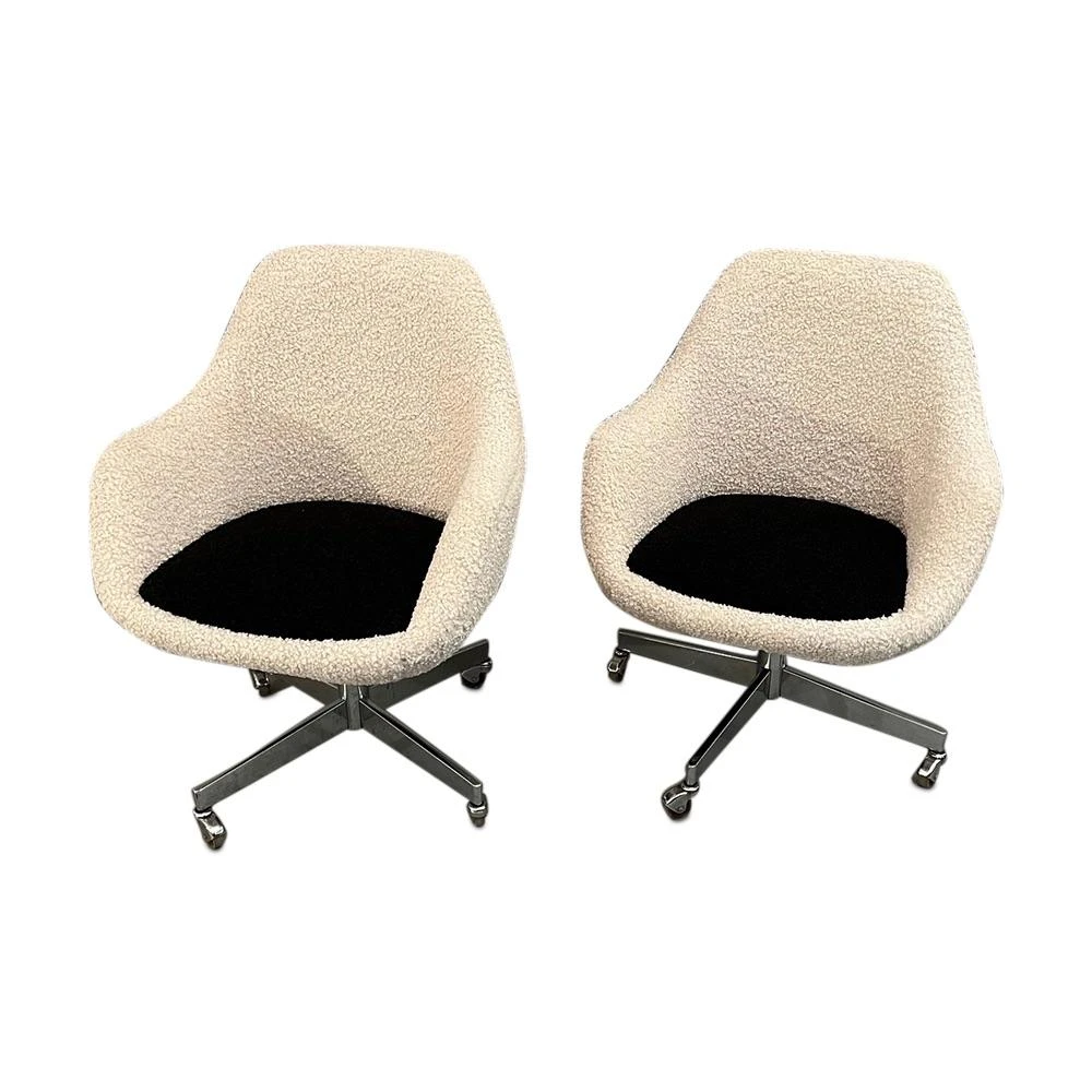Curated Mid Century dining/ office/accent chair with new cream & black boucle 1960’s Circa designed by Knoll (4 Available)