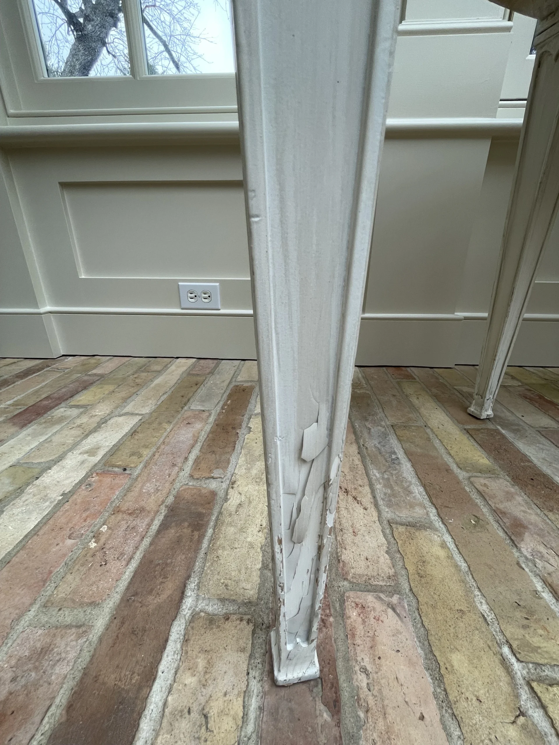 Paint is peeling on the back legs. Easy to have repainted.