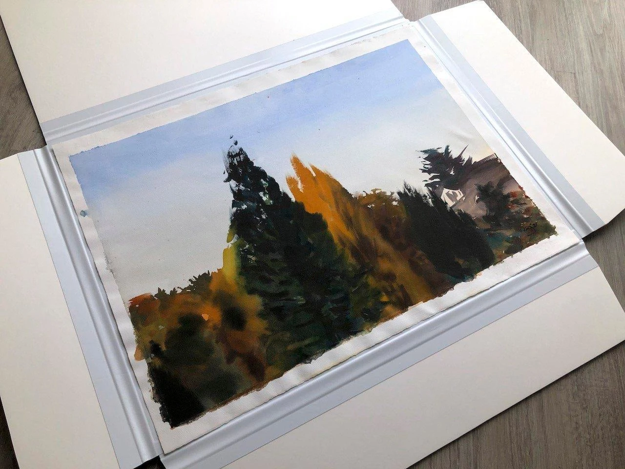 “Plein Air from 2400 S. Hill, Seattle, 10.30.21, ~11am, Saturday (Two Trees)”, original watercolor painting by David Orrin Smith, 22 …