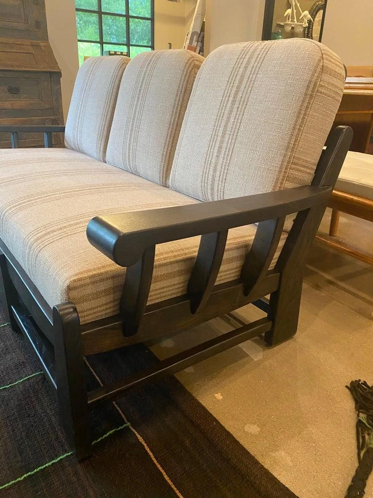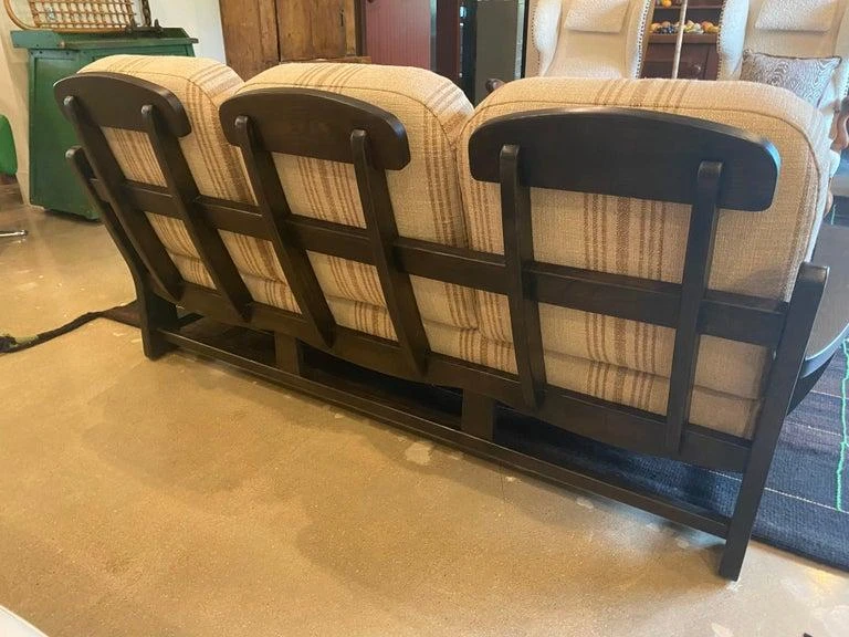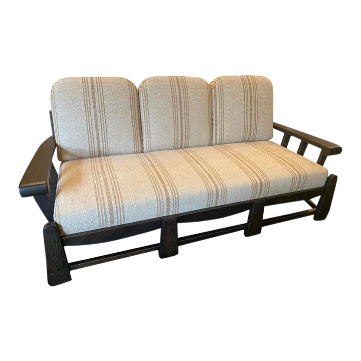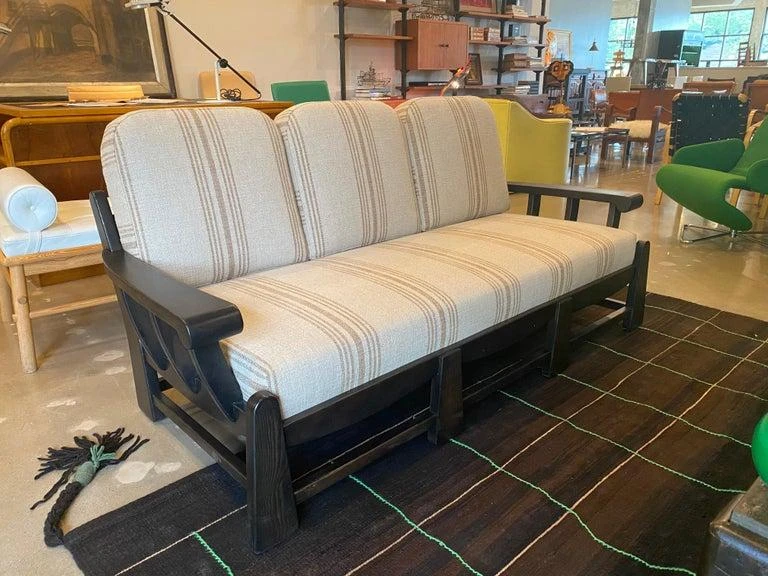 Sculptural ash (looks just like oak) sofa newly refinished in fine ebony stain by professional restorer. All new cushions and …