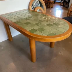 Sculptural ash (looks just like oak) sofa newly refinished in fine ebony stain by professional restorer. All new cushions and upholstery in striped Belgian linen. Comfortable and as good looking from the back as it is from the front in the distinct style of French designers Guillerme et Chambron. Presents in almost perfect condition. NL, 1960’s. Matching pair of chairs also available. See separate listing.