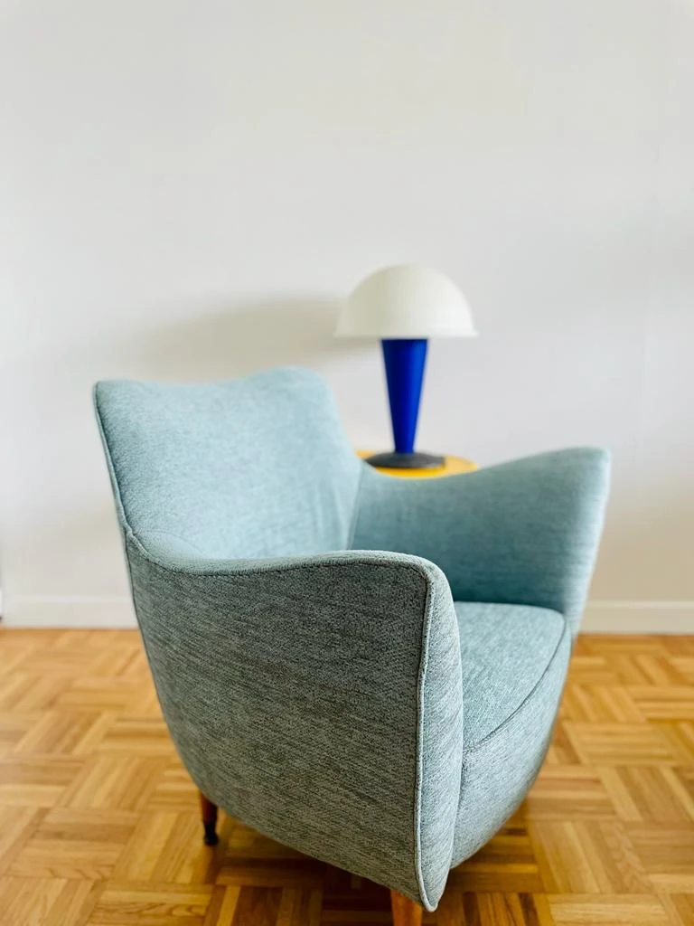 Elegant and sculptural Perla Lounge chair designed in 1952 by Guglielmo Veronesi and manufactured by I.S.A Bergamo with winged arms …