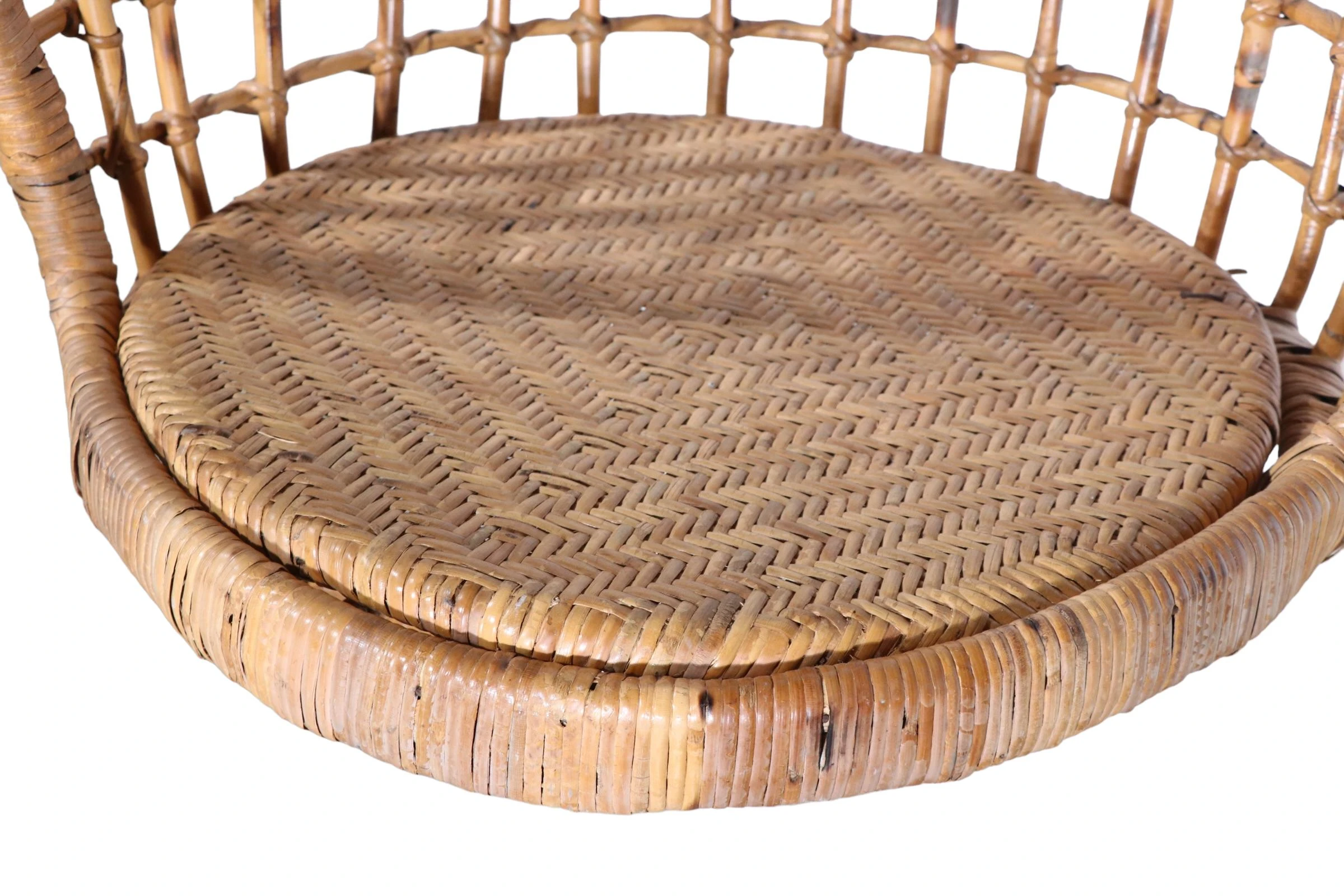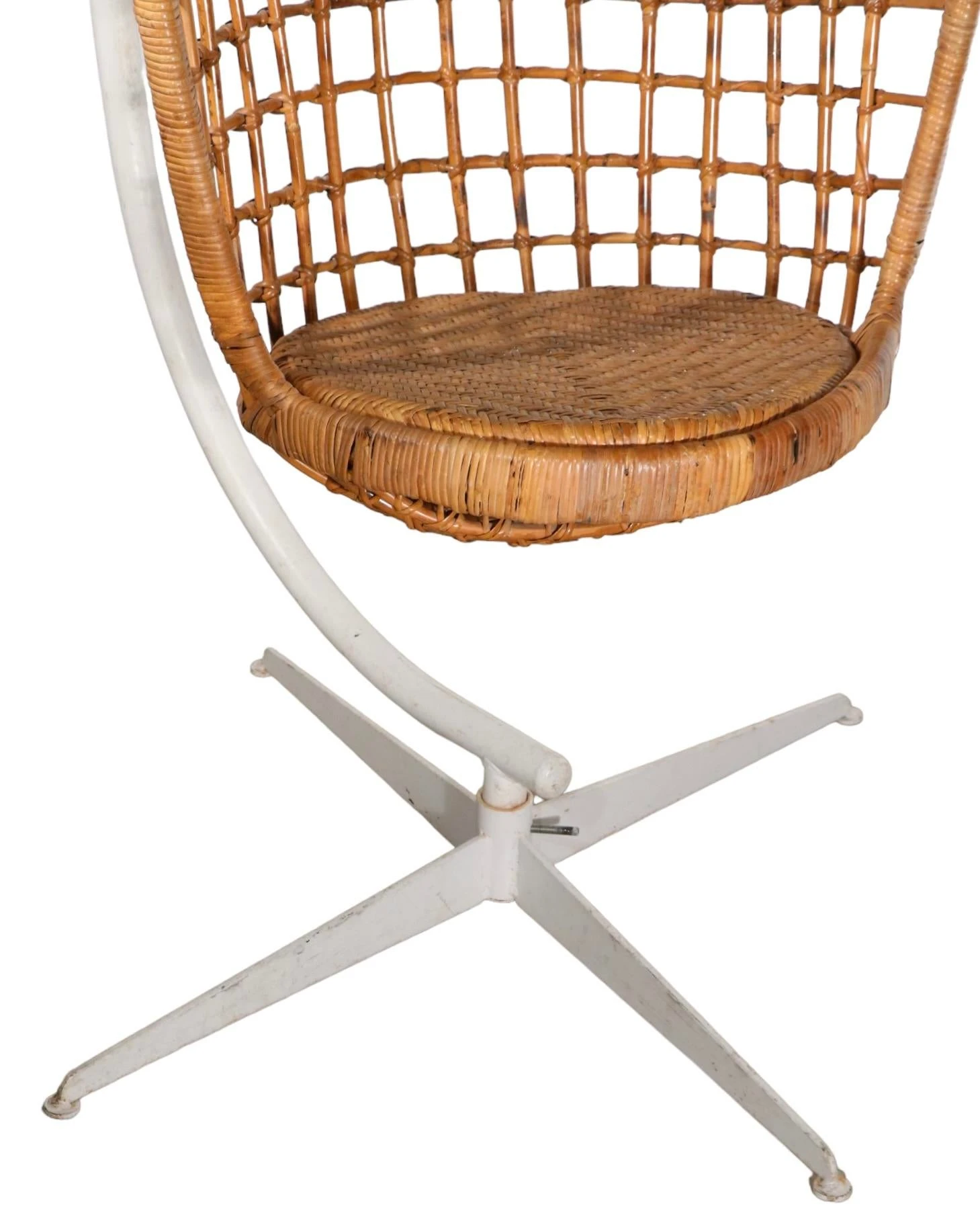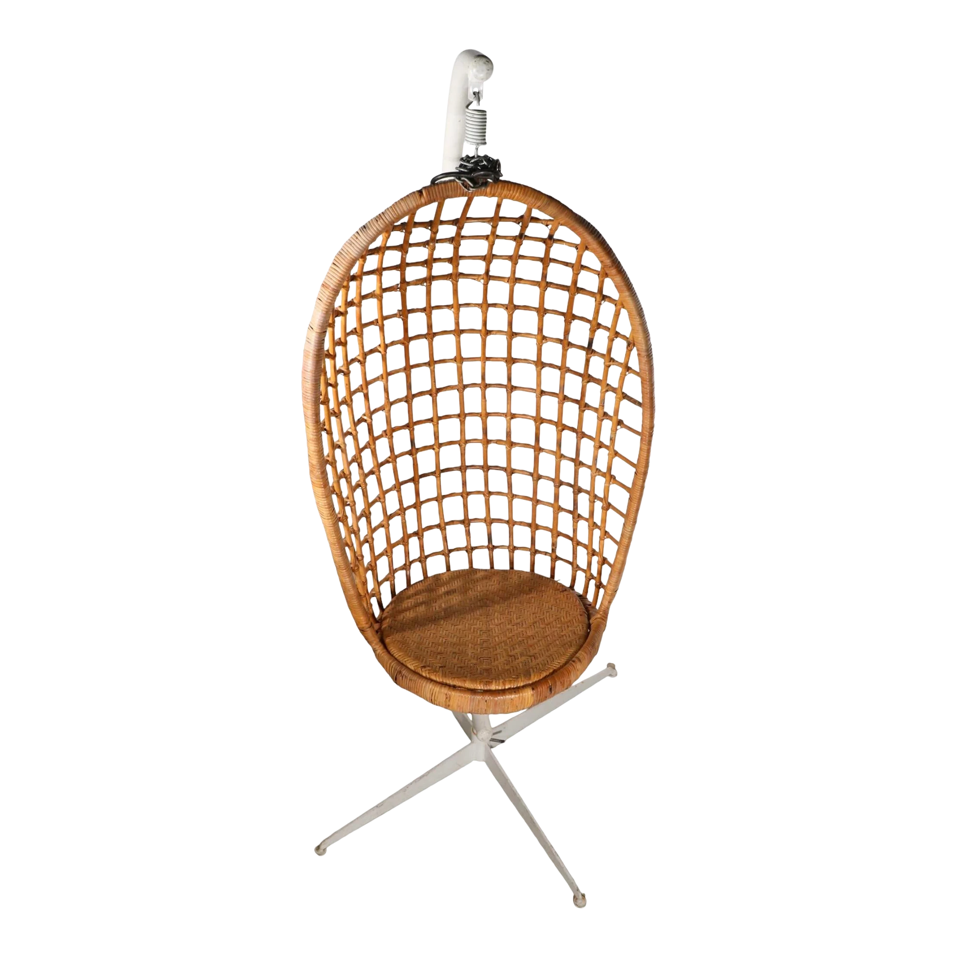 Cool 1970’s period hanging wicker basket, or “Egg” chair with its original metal stand. The chair is suspended from the …