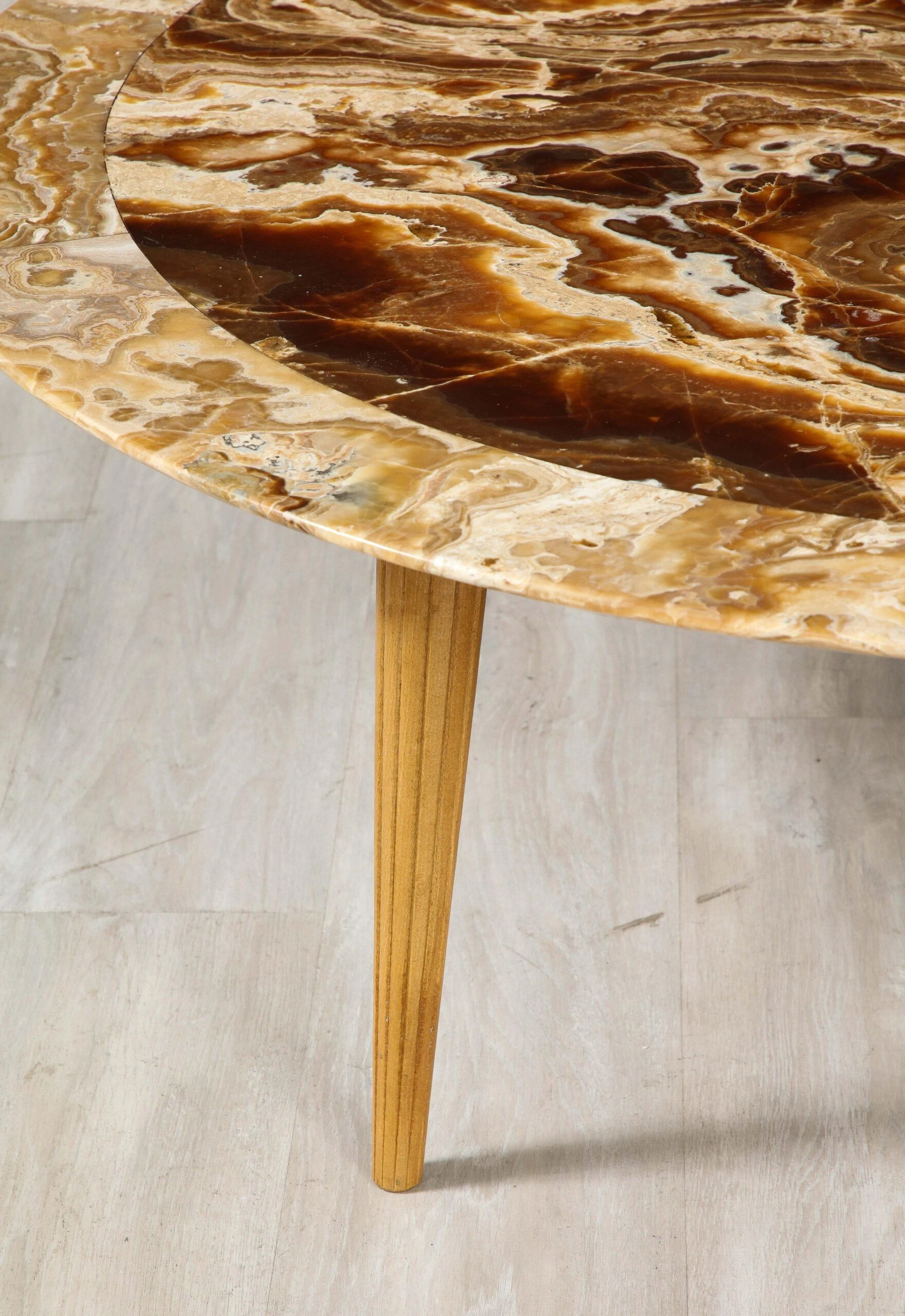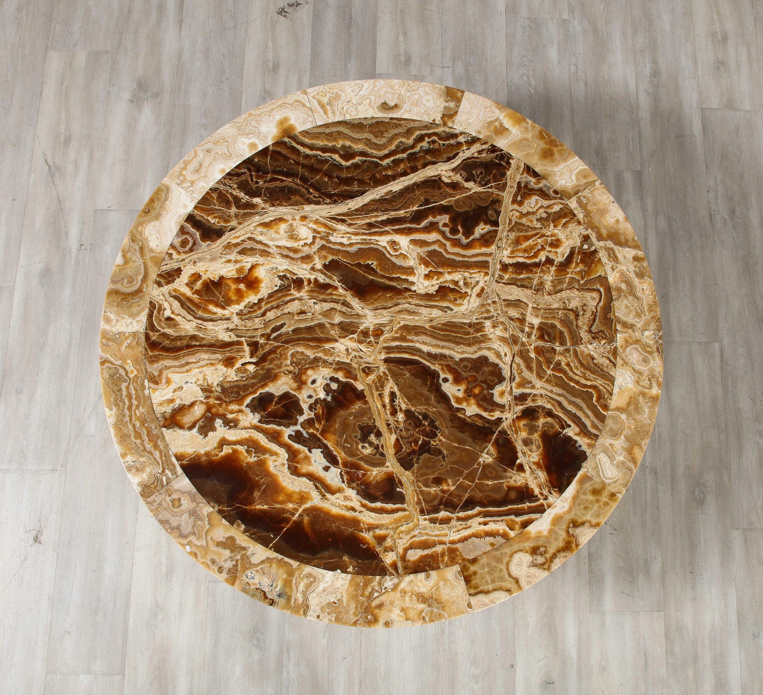 Italian 1960’s grand circular coffee table, the top in a spectacular agate, with the outer border being a lighter coloration …