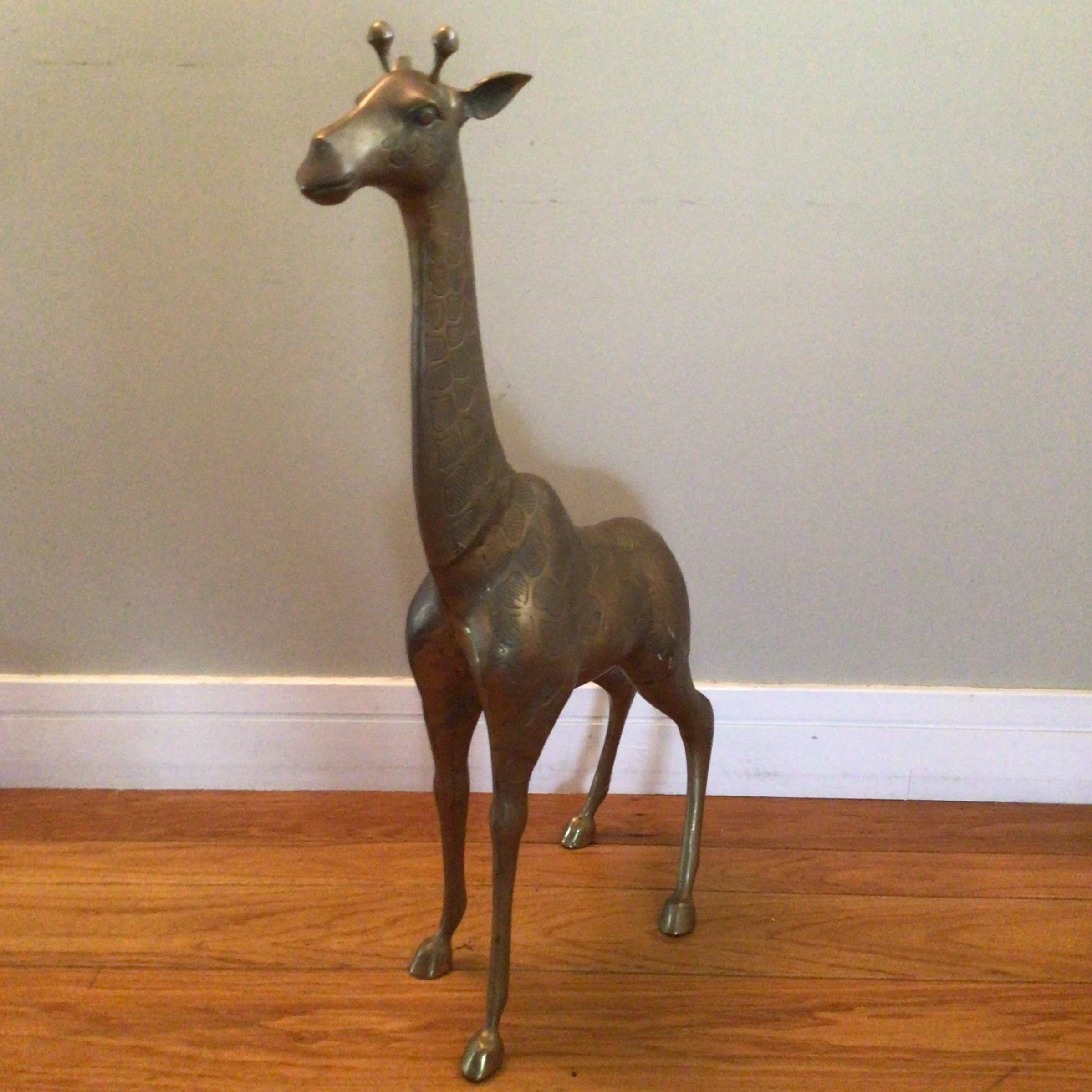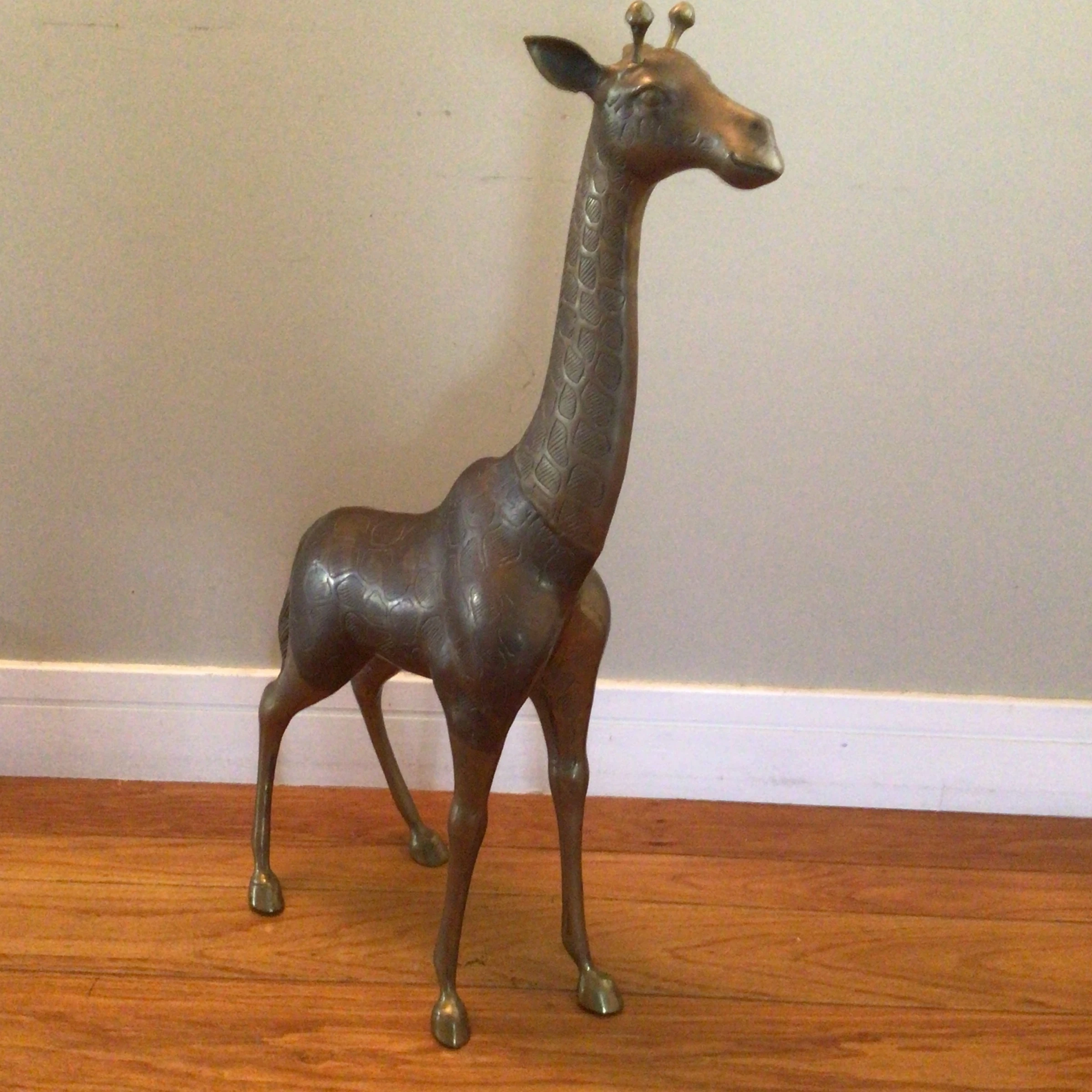 1970’s tall Vintage solid brass giraffe floor statues/Giraffe floor sculpture was part of a series of popular African animal sculptures …