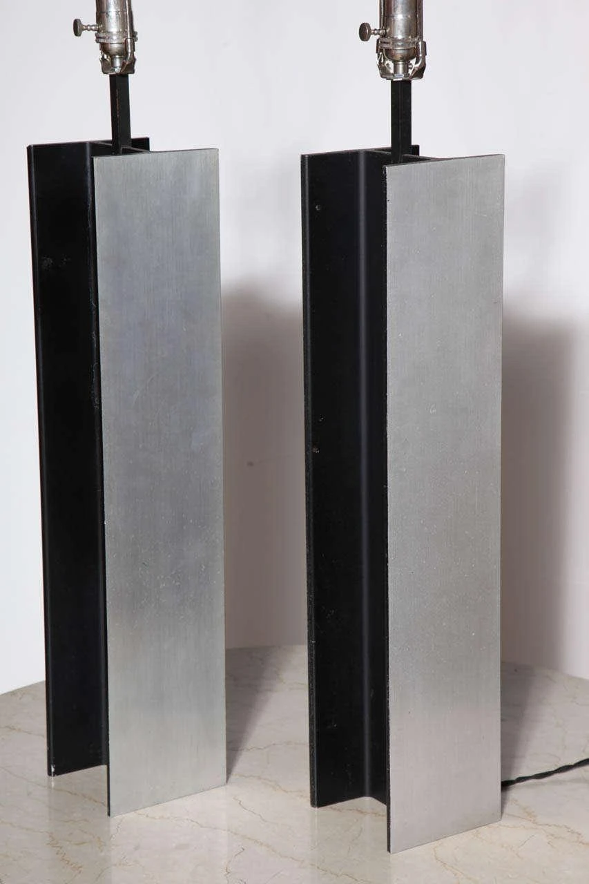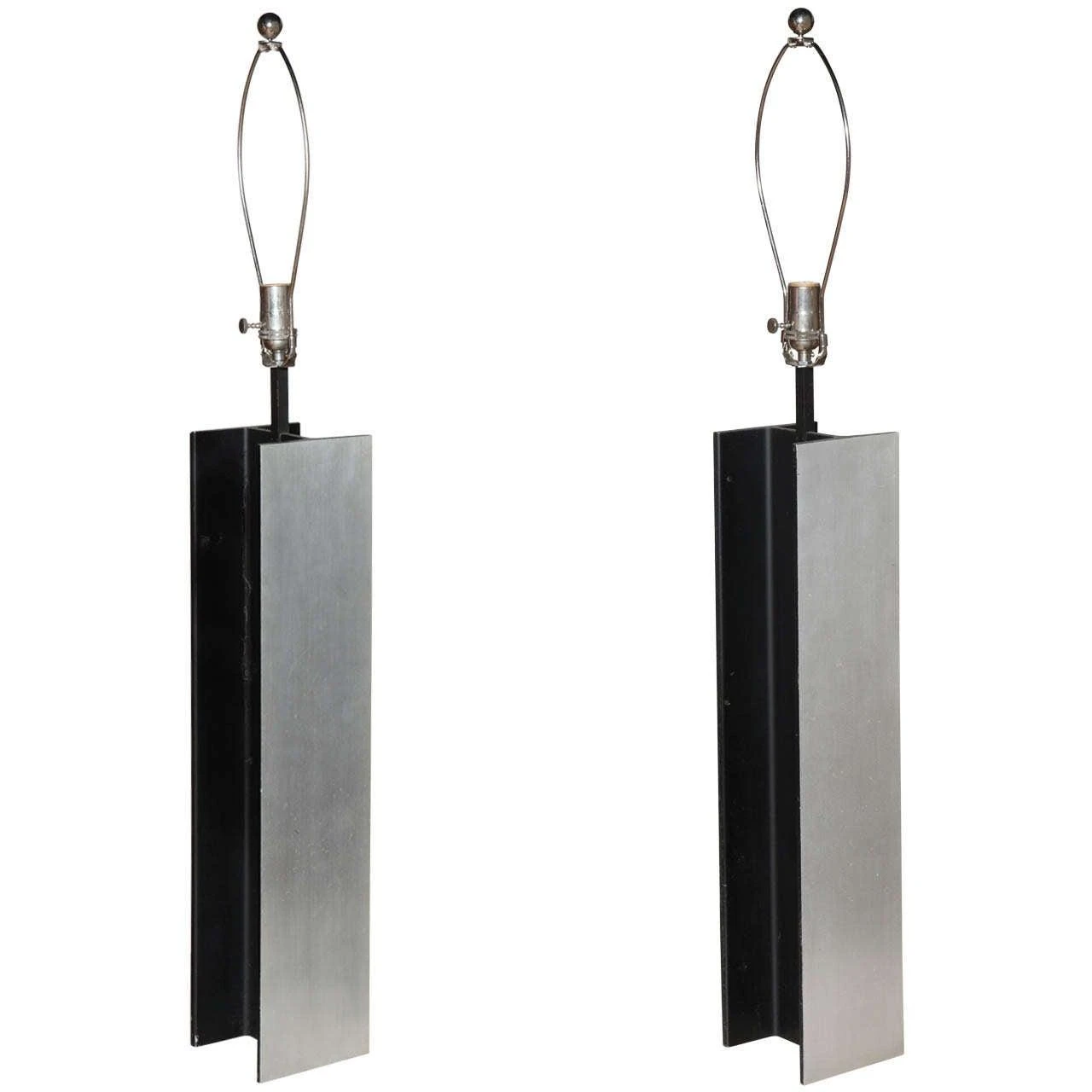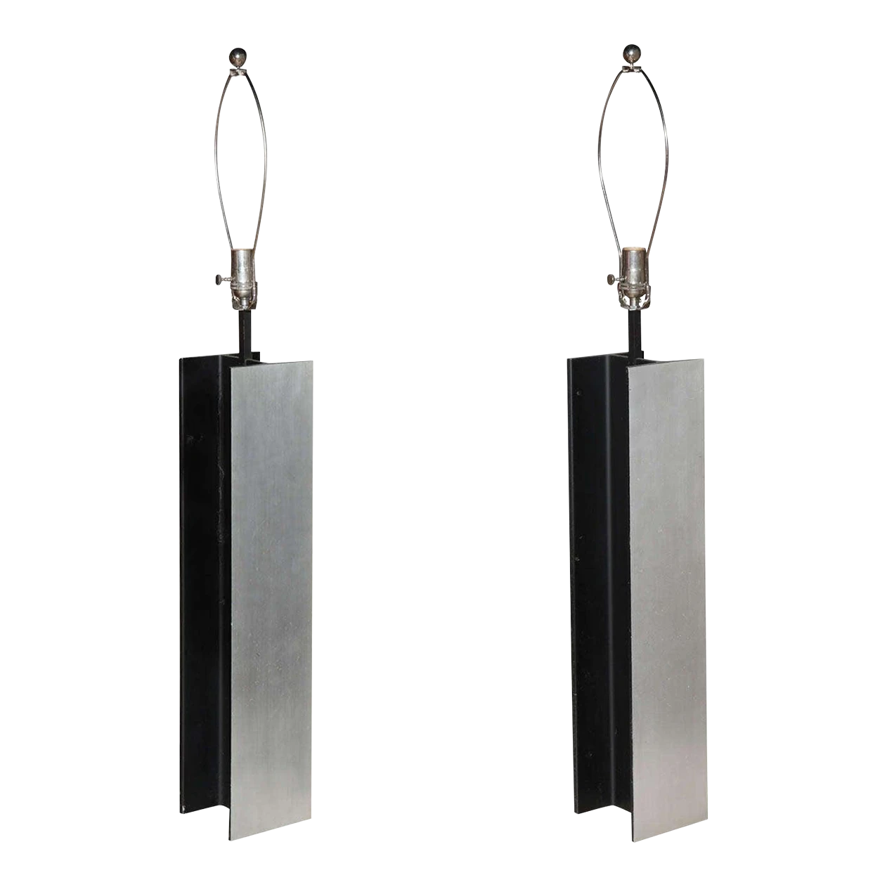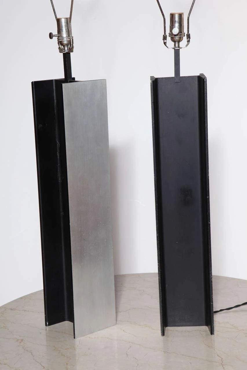 Classic, substantial pair Laurel Lamp Company Brushed and Black enameled Steel I Beam Table Lamps. Silver and Black. Industrial. Architectural. …