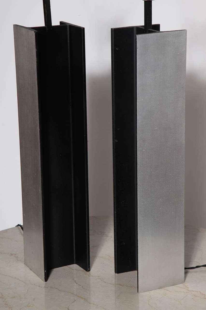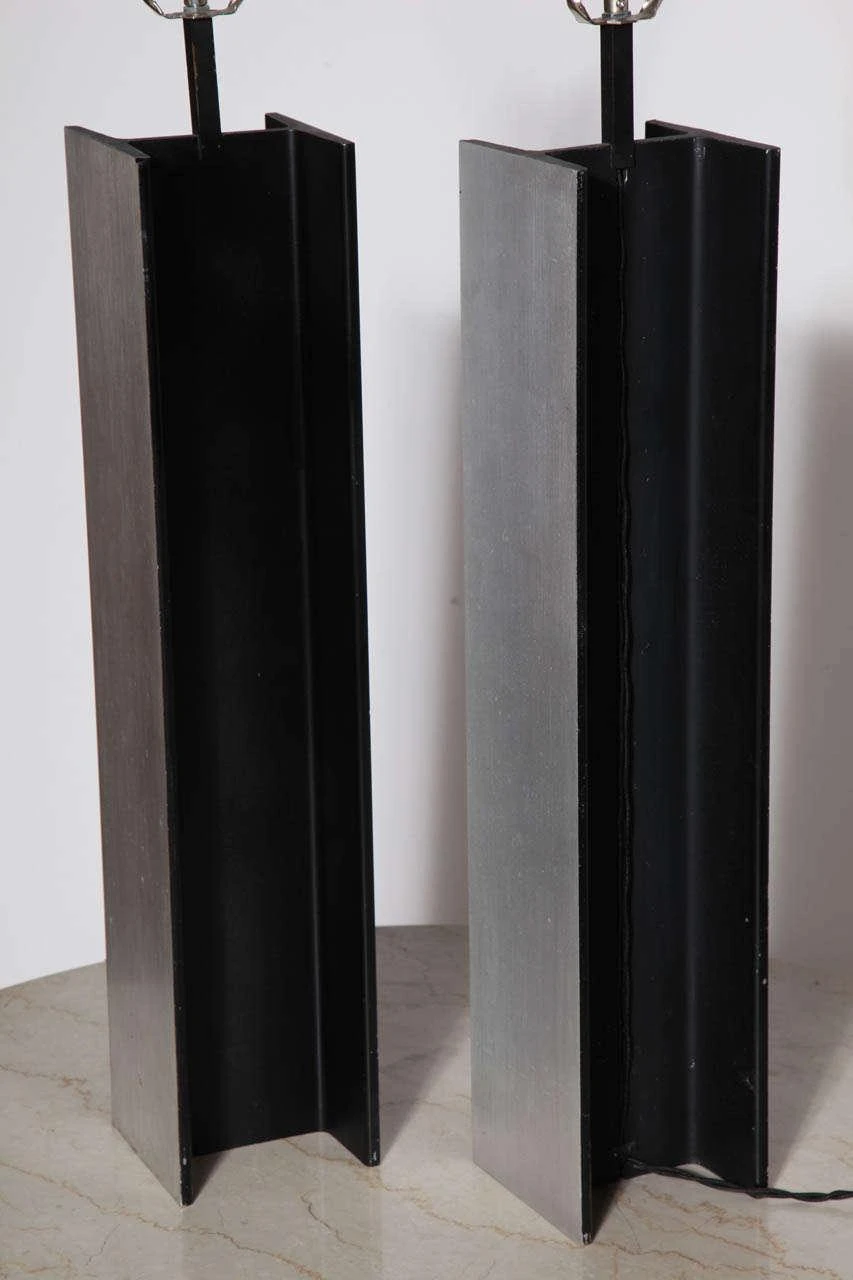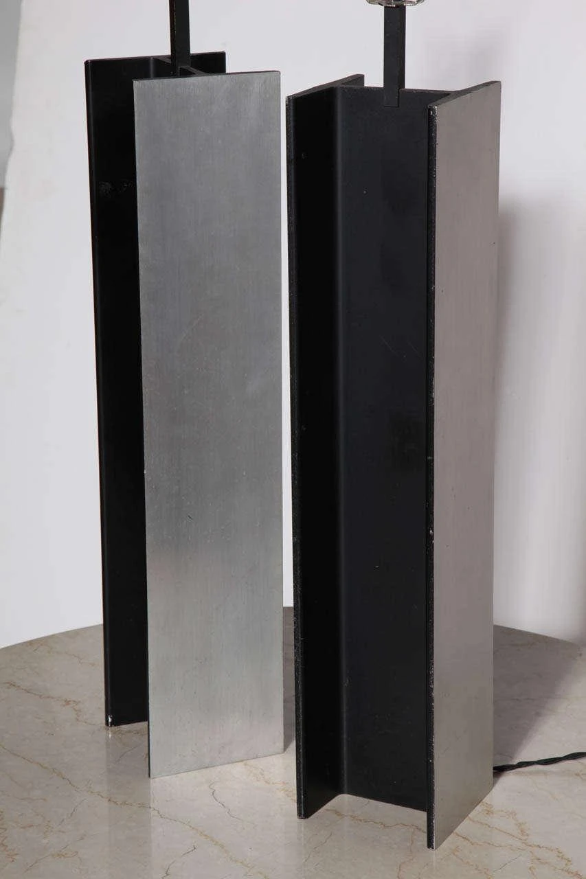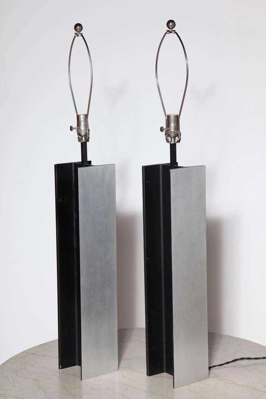 Classic, substantial pair Laurel Lamp Company Brushed and Black enameled Steel I Beam Table Lamps. Silver and Black. Industrial. Architectural. …