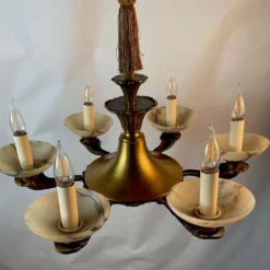 1920’s Art Deco Alabaster And Bronze 6 Arm Chandelier