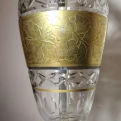 1920’s Art Deco Josef Hoffmann Wiener Werkstatte Art Glass With Gilt Floral Banding Table Lamp