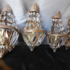 1920’s French Louis XVI Style Bronze/ Cut Cascading Crystal W/ Bronze Wall Sconces Set Of 4