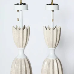 Gerald Thurston “Floriform” Eggshell Ceramic Lamps, 1950’s – A Pair