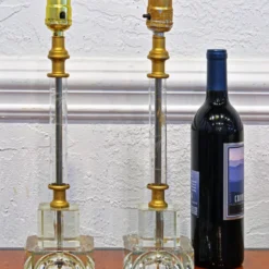 Pair Of Cut And Etched Crystal Art Deco Style Table Lamps, 1930’s
