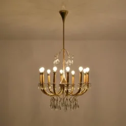 1950’s Italian Crystal Chandelier By Oscar Tolasco For Lumi Milano