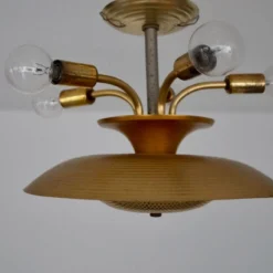 1950’s Regency Hans Kogl Radiant Dore Metal Sunburst Ceiling Flush Mount/ Chandelier