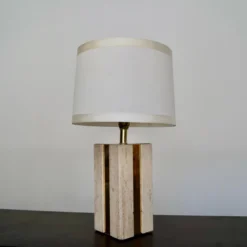 1970’s Hollywood Regency Italian Travertine & Brass Table Lamp