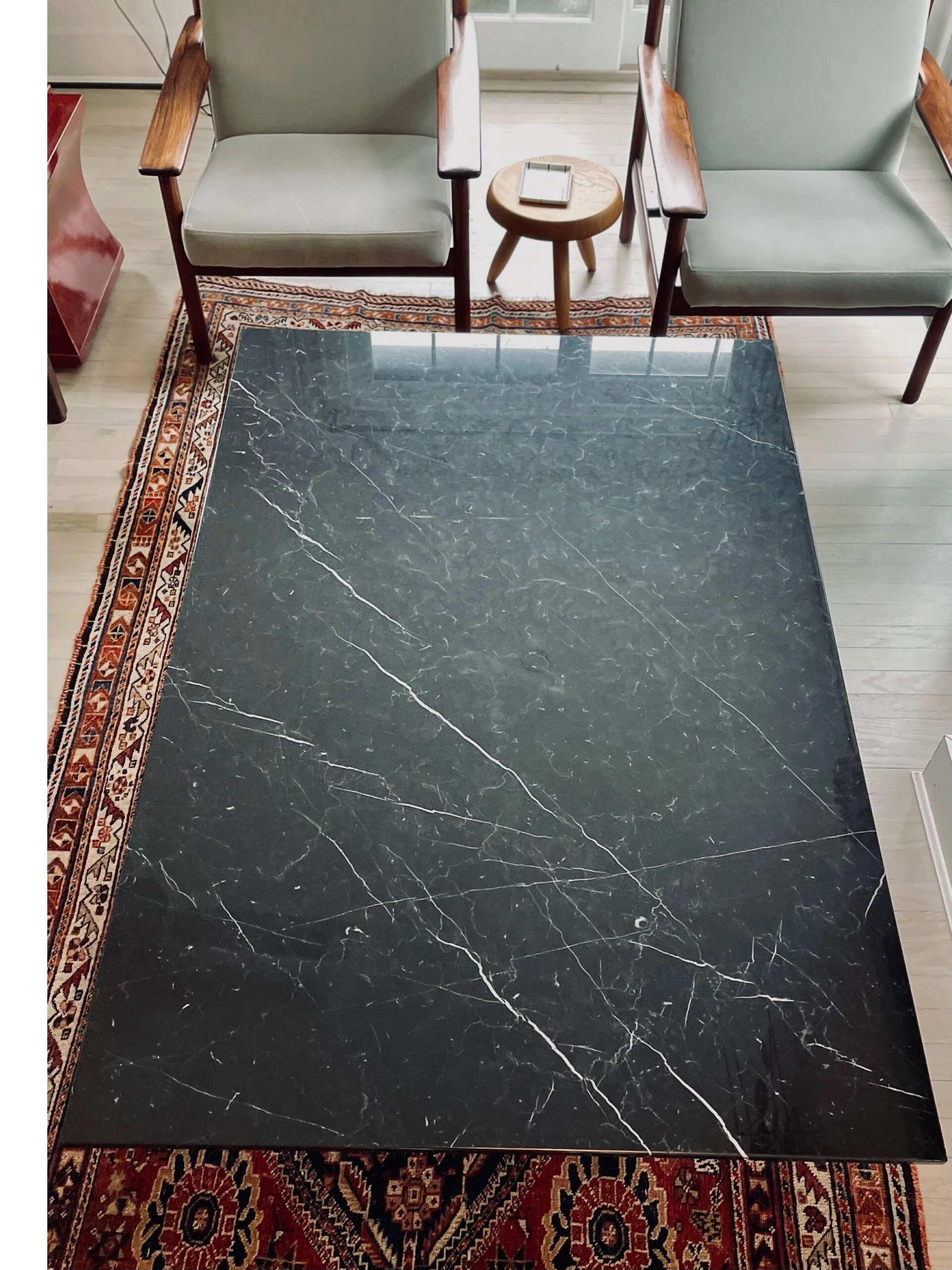 The Black Marquina Marble Slab is in perfect condition with no scratches. The base in chrome and brass shown very …