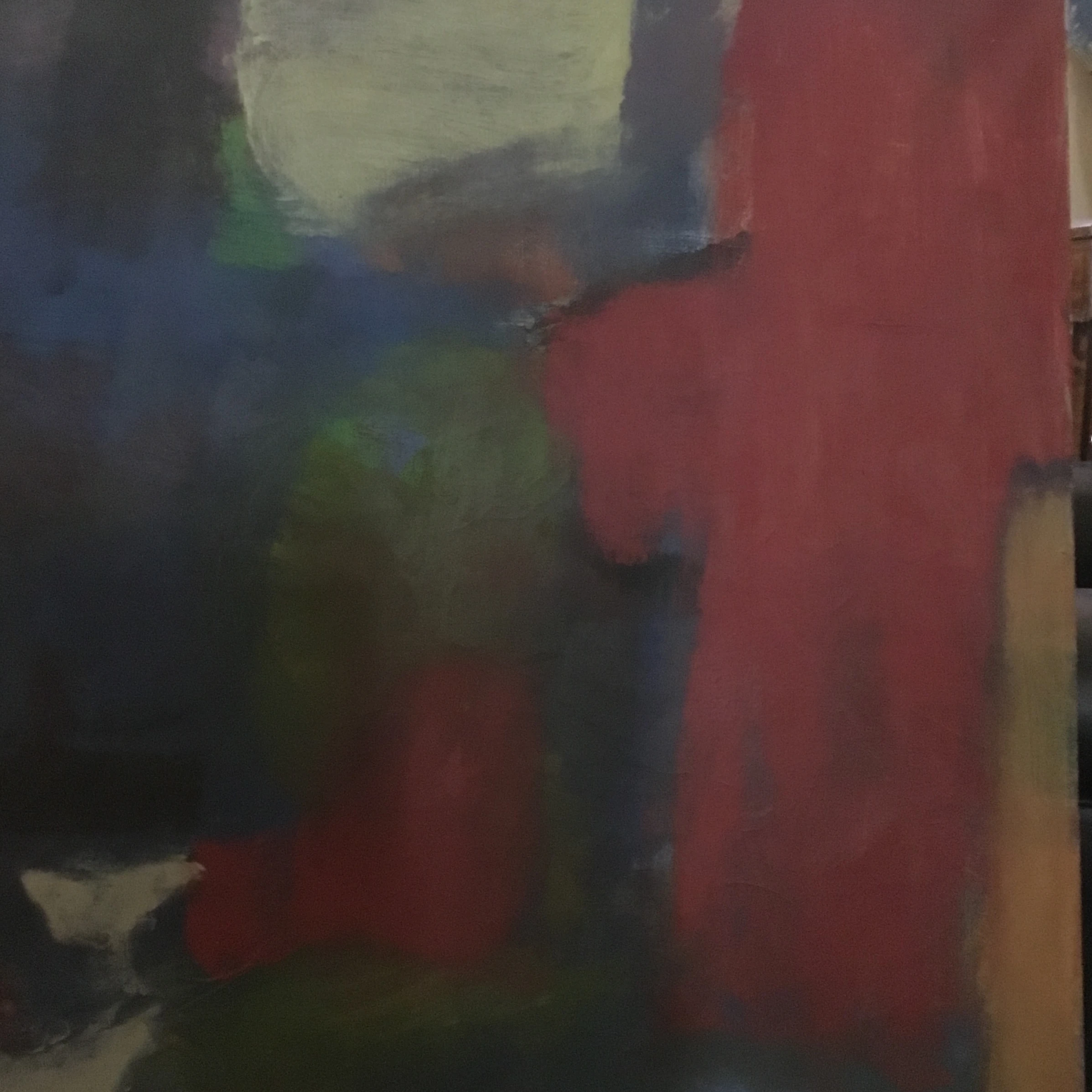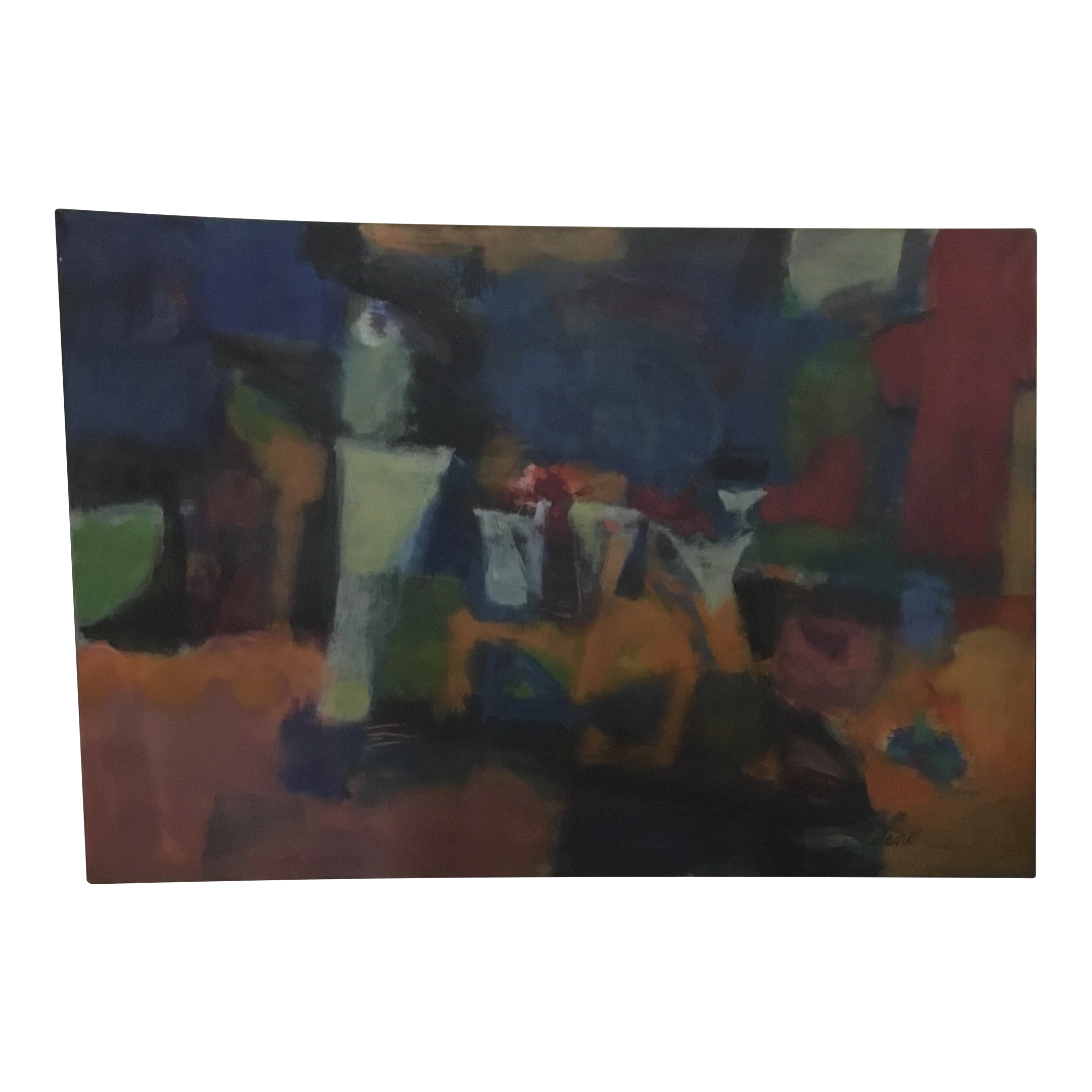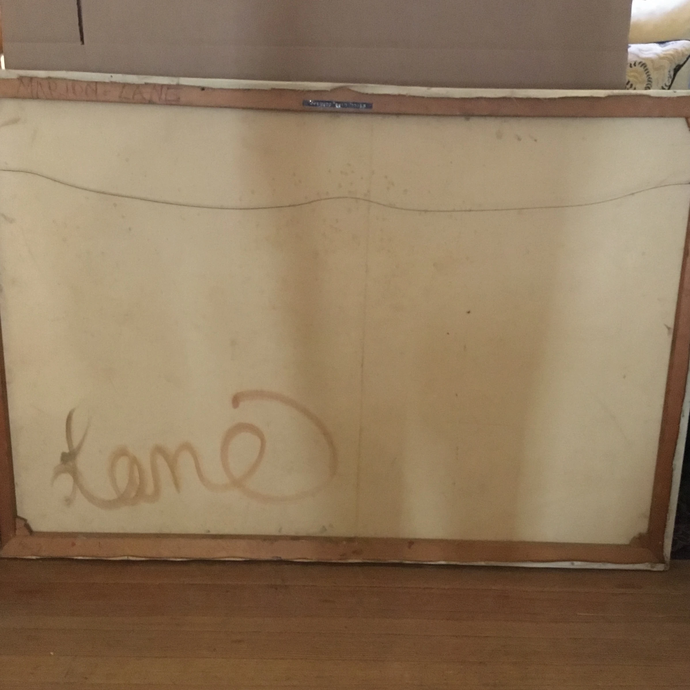 A stunning 1950 large scale abstract oil on canvas by listed artist Marion Lane. Labeled on Verso. signed verso and …