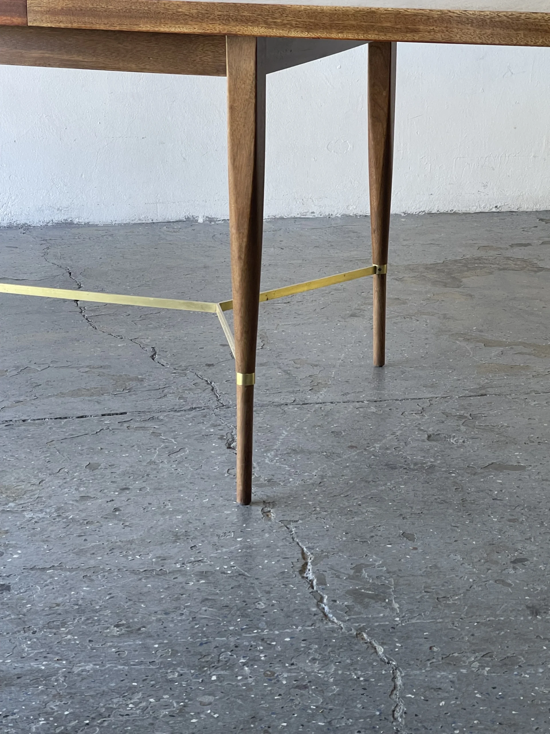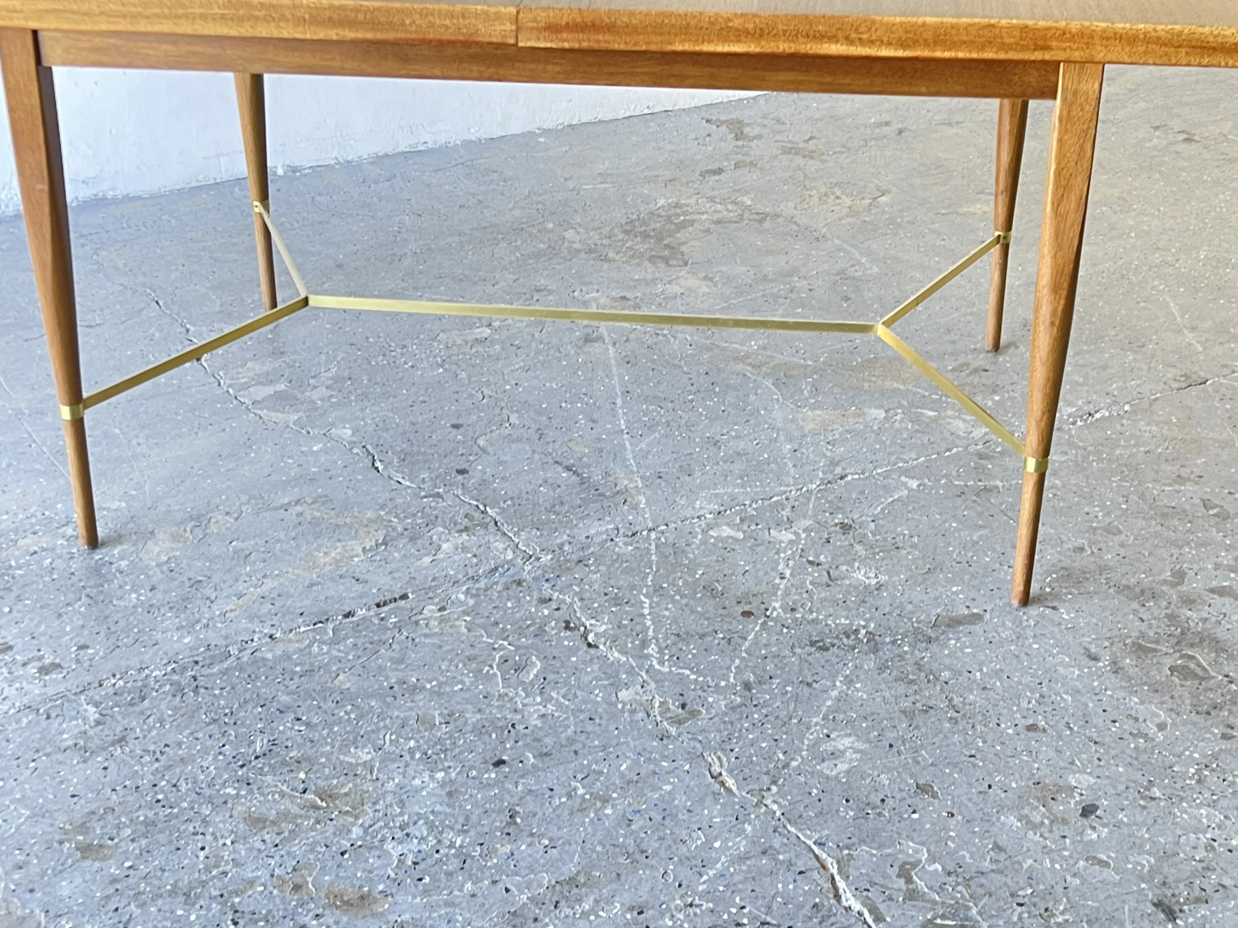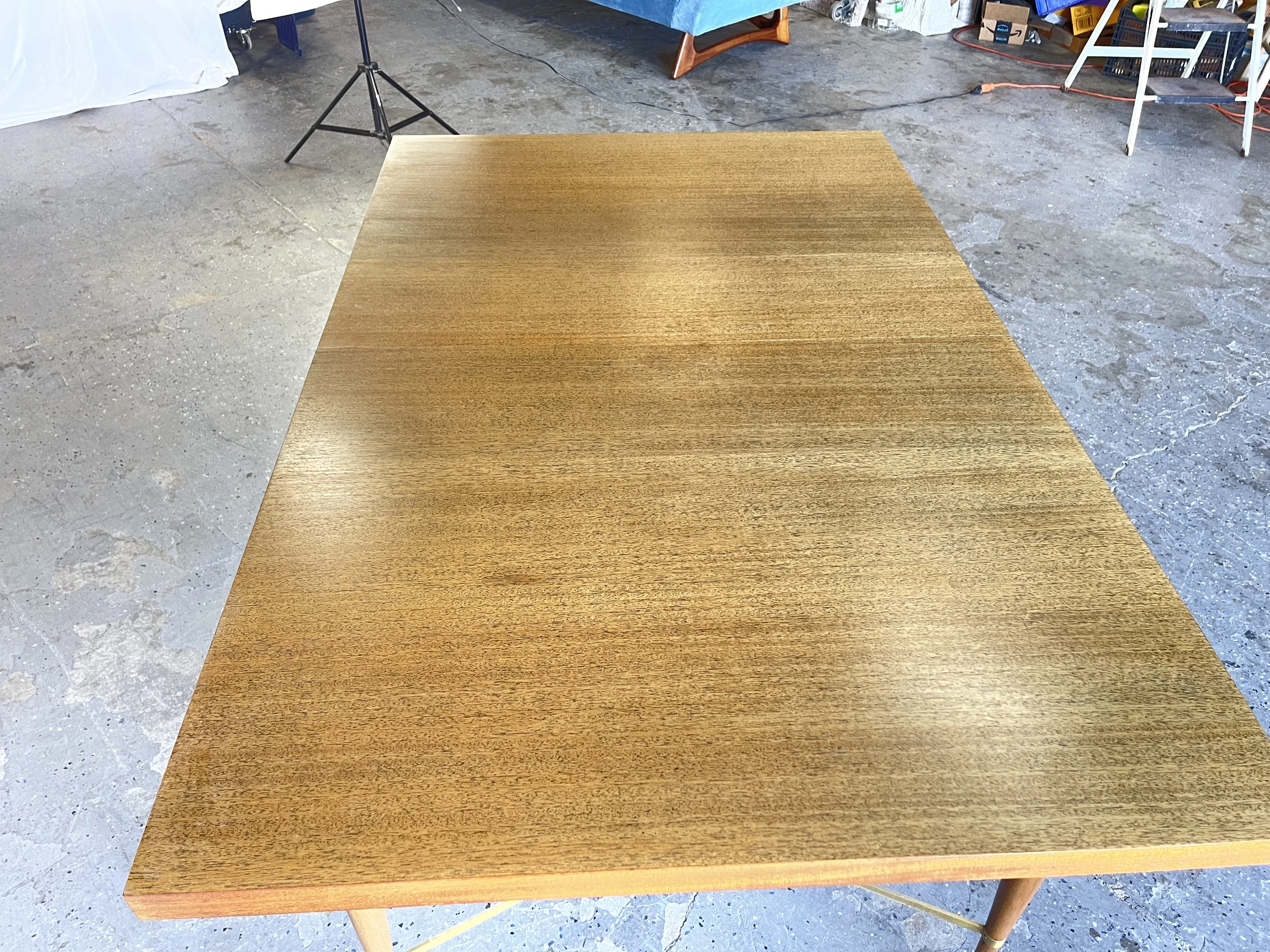 1950s Mahogany & Brass X Cross Support Extension Dining Table by Paul McCobb