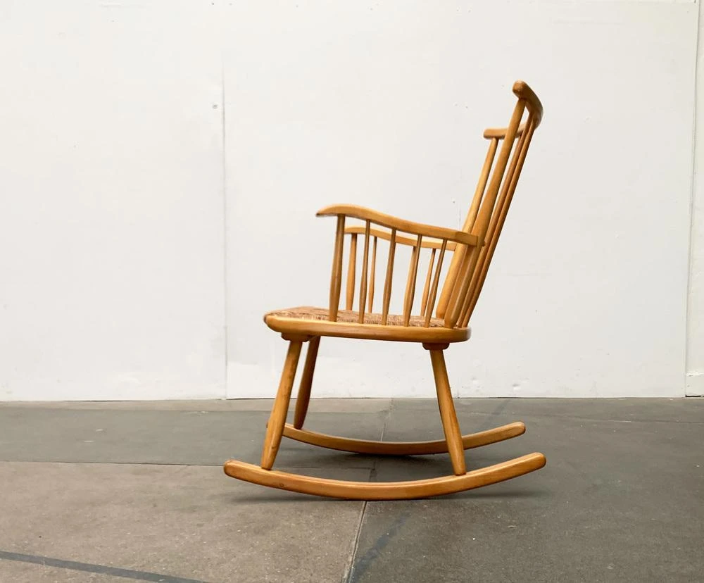 Mid Century rocking chair of WK-Möbel according to a design by Arno Lambrecht from the 1950s.