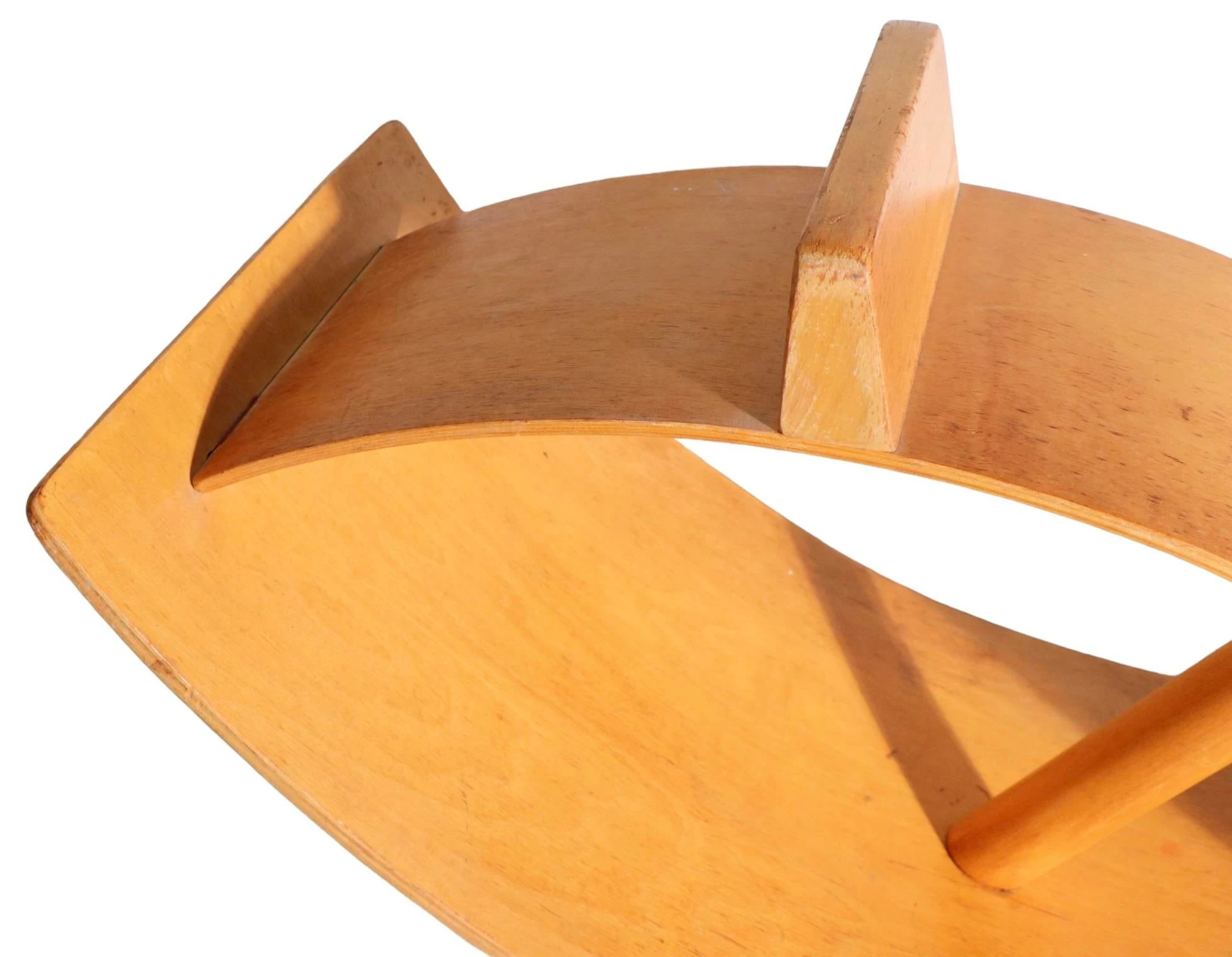 Iconic mid century bent plywood Childs toy rocking chair designed by Gloria Caranica for Creative Playthings, circa 1960’s. This example …