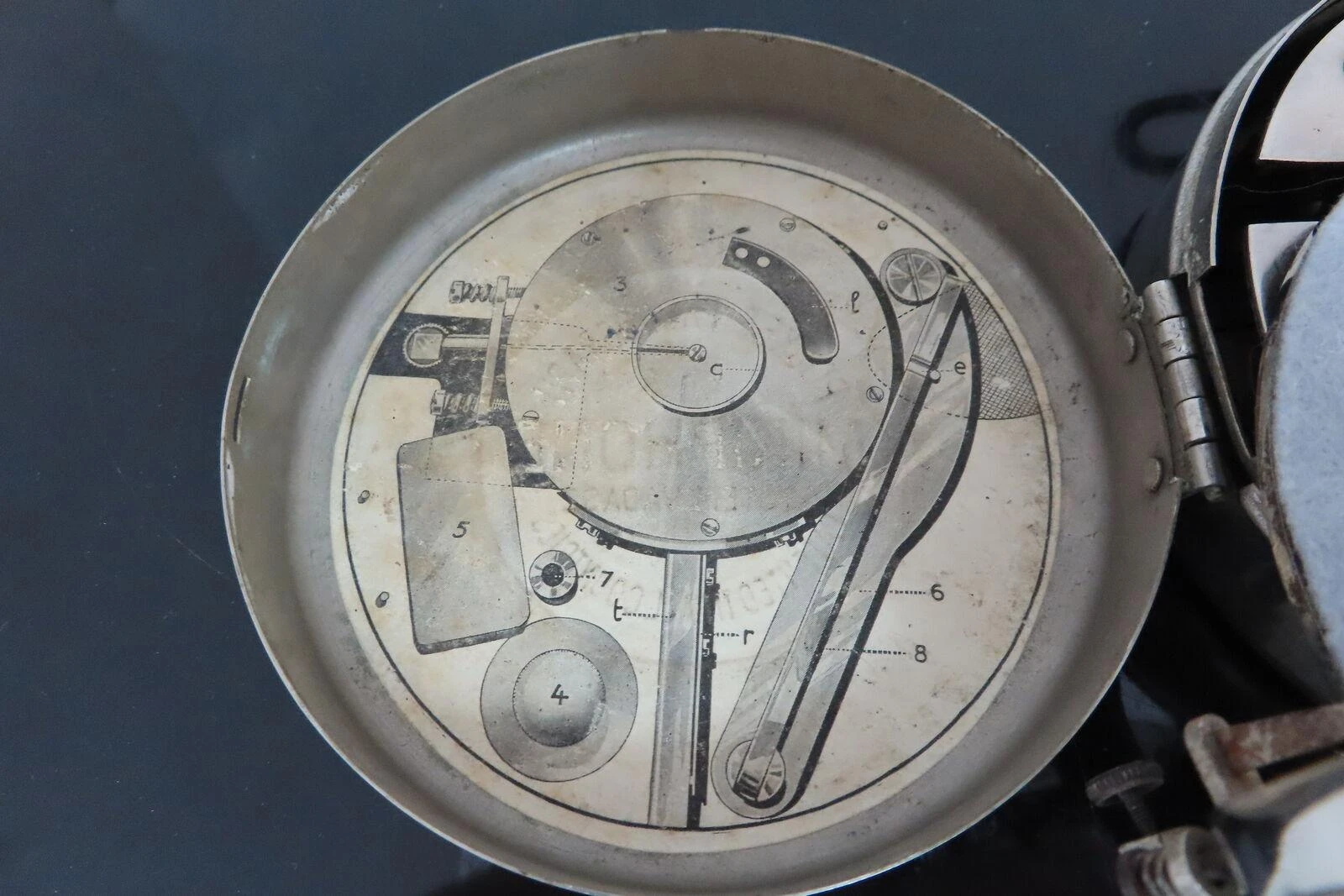 It’s a lovely gadget, predating the Sony Walkman and iPod. The parts are stored in a nickel-plated box (also available in gold or silver), which, when closed, had a diameter of just 11.5 cm and a thickness of 4.7 cm. You pulled and pushed the thing together, connecting the recorder head and the two-part Bakelite resonator to the foldout tone arm, placed the record on the turntable’s pin, flexed your fingers, wound the handle 50 times, stuck on your 78rpm 10-inch platter and listened.