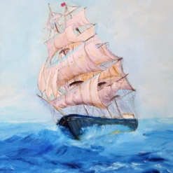 Framed 1960’s Coastal Ship Sea Scape Oil Painting