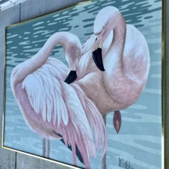 Large 1980’s Flamingoes Painting By Lee Reynolds