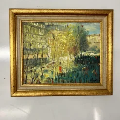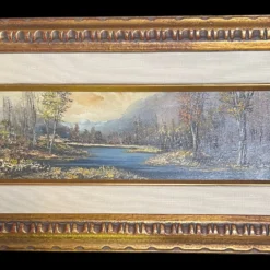 Mid 20th Century S Gruber Oil Painting Landscape Gold Gilt Frame Wood Panel Signed Vintage Antique