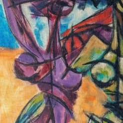 Original Vintage Abstract E.J.Hartmann Cubist Portrait Painting 1970’s Signed