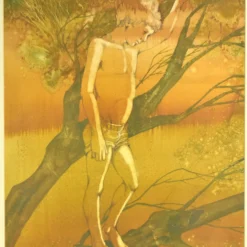 1960’s Shelly Canton Watercolor Young Boy Barefoot In Tree Chicago Artist