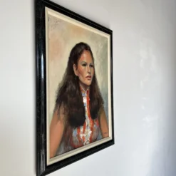 1970’s Vintage L. Yolub Japanese Woman Oil Portrait Painting, Frame