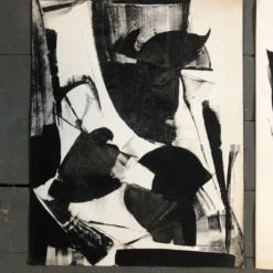 1980’s 2 Original Abstract Paintings Black & White Signed Licht- A Pair