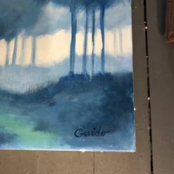 1980’s Original Vintage Abstract Blue Tree Landsape Painting Signed