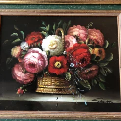 1980’s Original Vintage Impressionist Still Life Painting Signed Ornate Original Frame