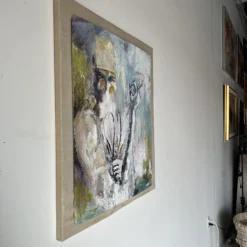 1980’s Lolita Fernandez Brito ” A Torch In The Space ” Oil Painting, Frame