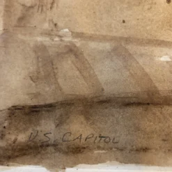 1990’s Original Abstract Watercolor Painting “us Capital” Building Washington DC Landscape Signed