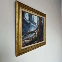 1980’s Vintage Original Abstract Female Nude Painting Vintage Carved Wood Frame Signed