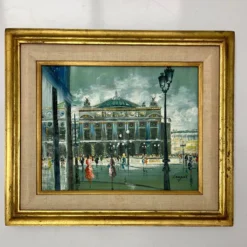 60’s Vintage Paris Painting Scene Of L’ Opera