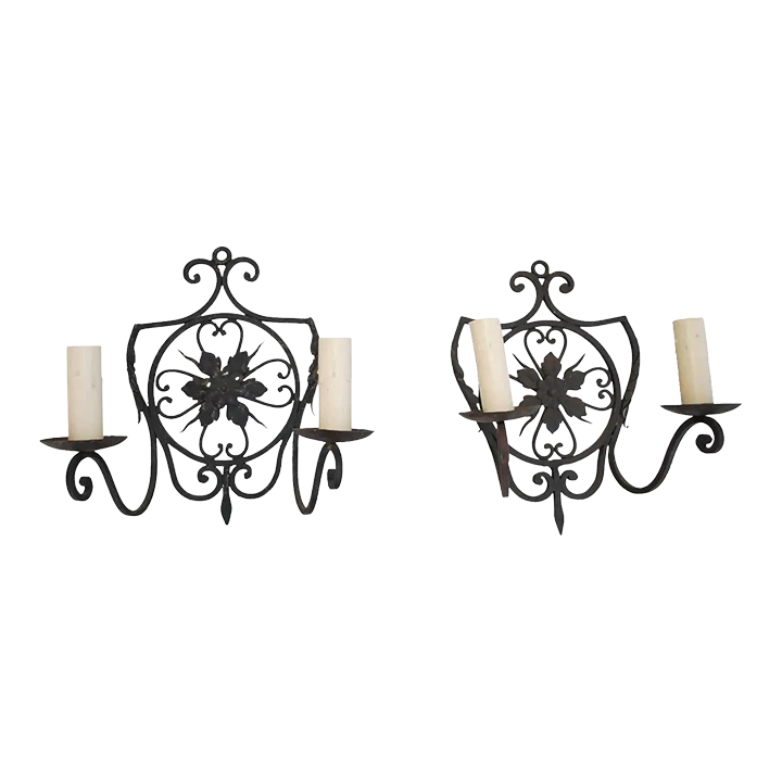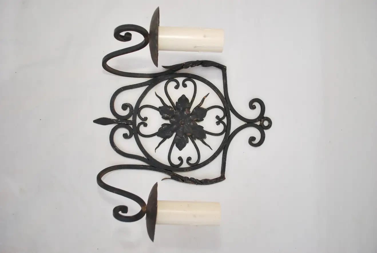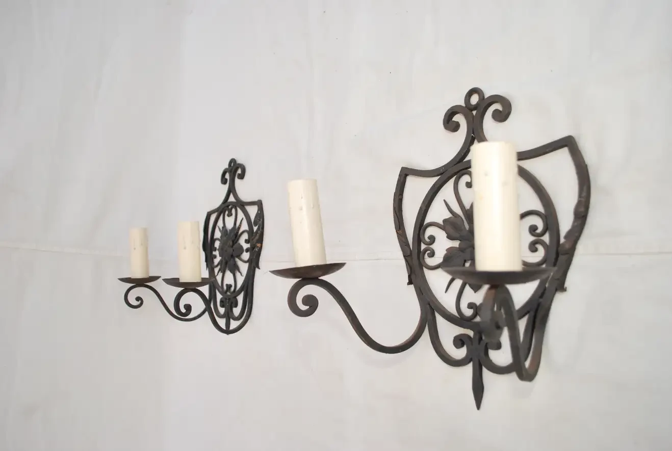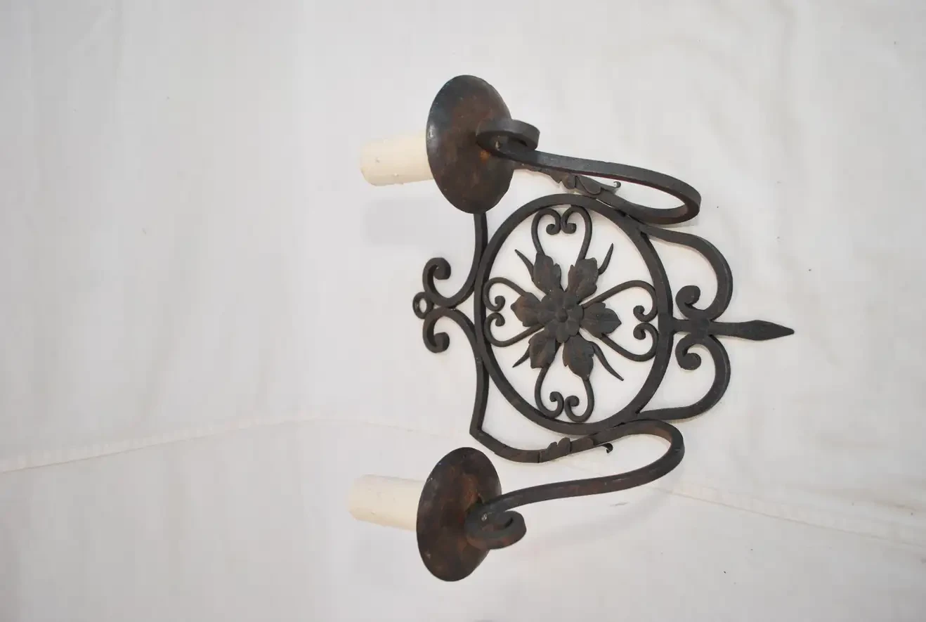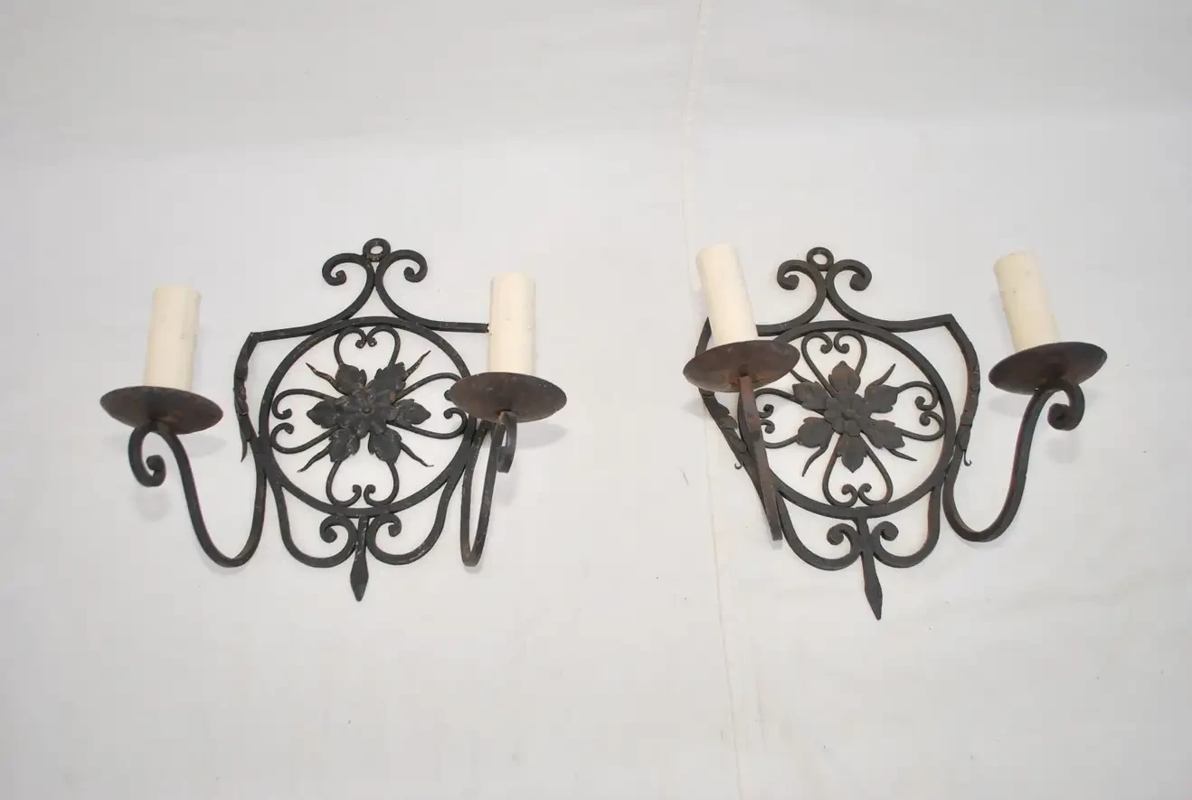 An elegant pair of French hands-forged wrought iron sconces, the patina is allot nicer in person.